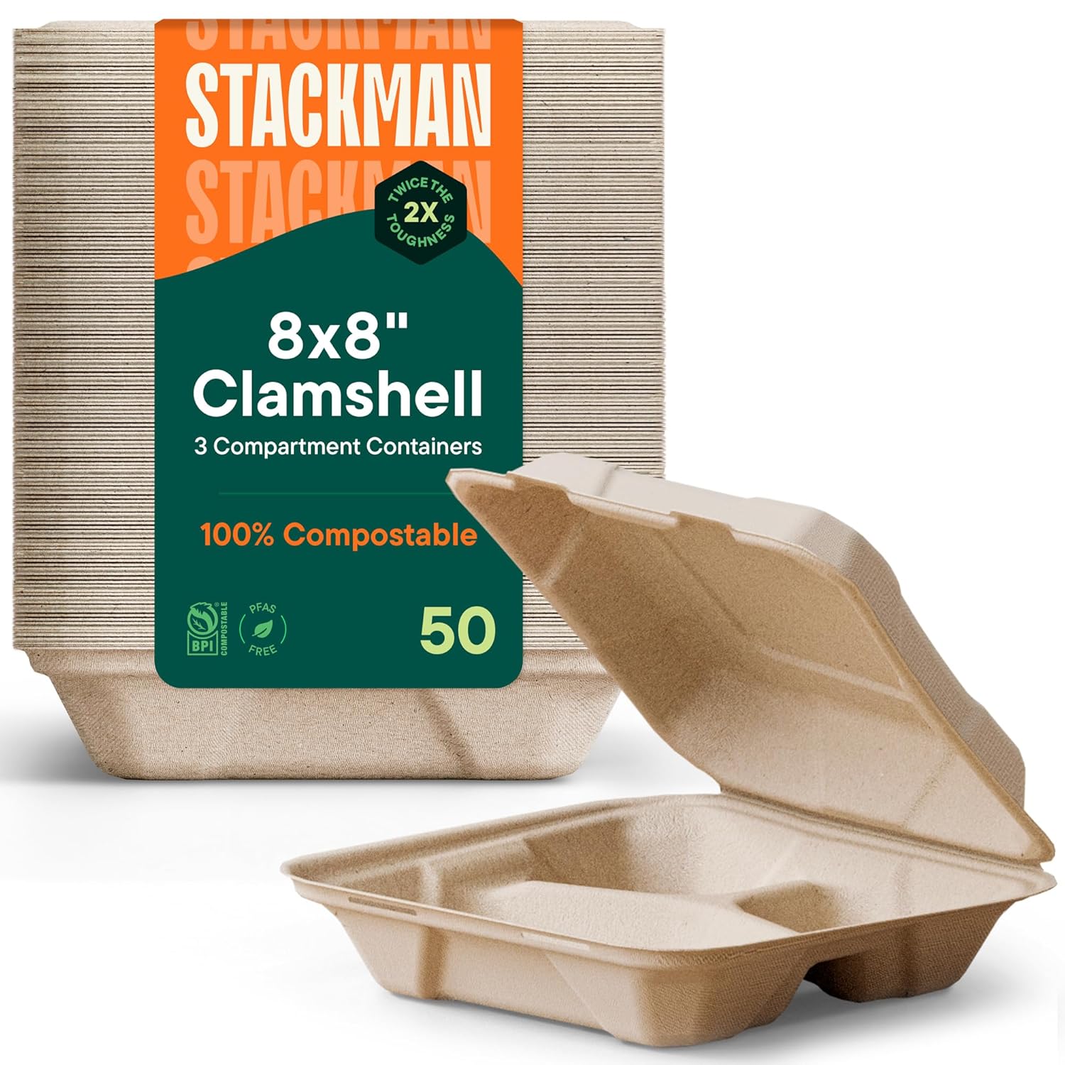 ![100% Compostable Clamshell Take Out Food Containers [8X8" 3-Compartment 50-Pack] Heavy-Duty Quality to go Containers, Natural Disposable Bagasse, Eco-Friendly Biodegradable Made of Sugar Cane Fibers - Image 4](https://ecologicnomad.com/wp-content/uploads/2025/09/91+3F13YpAL._SL1500_.jpg)