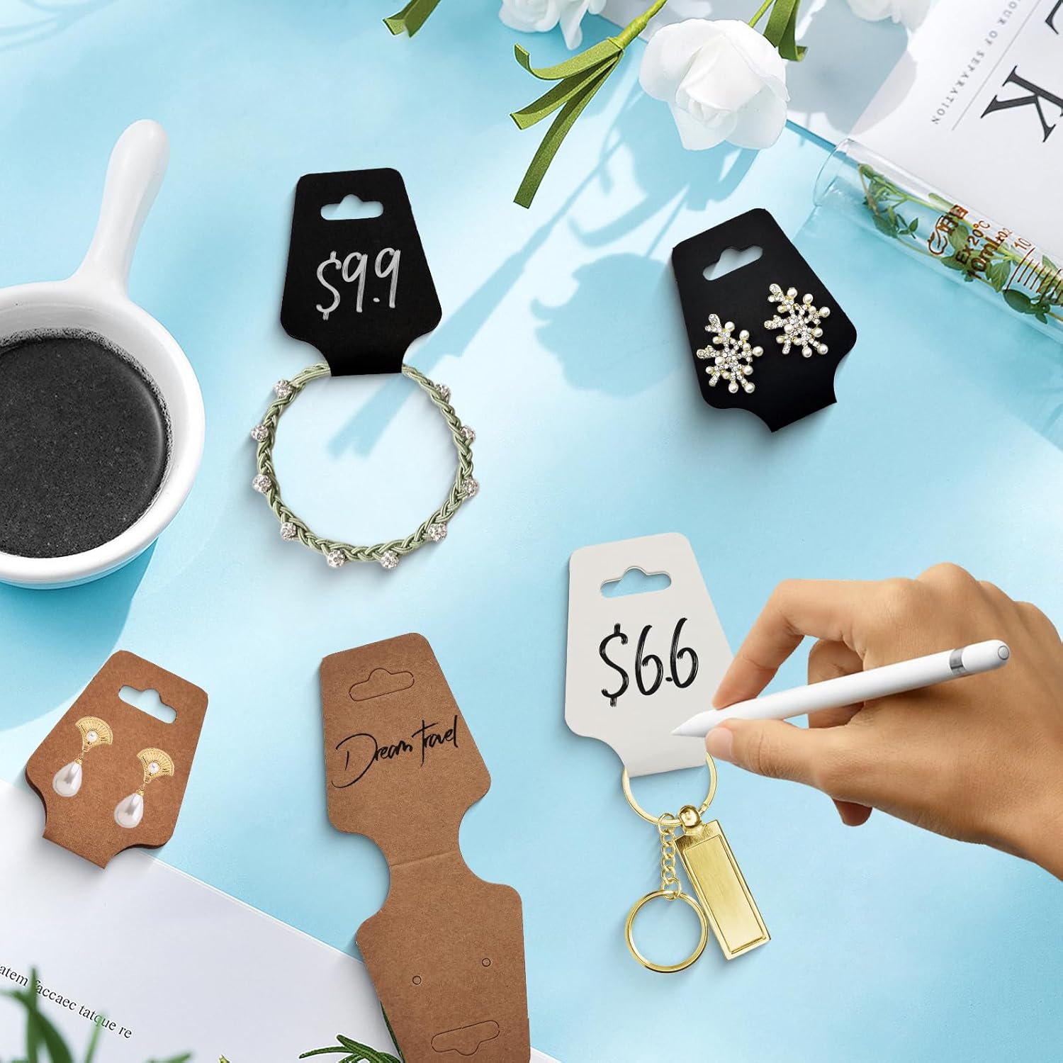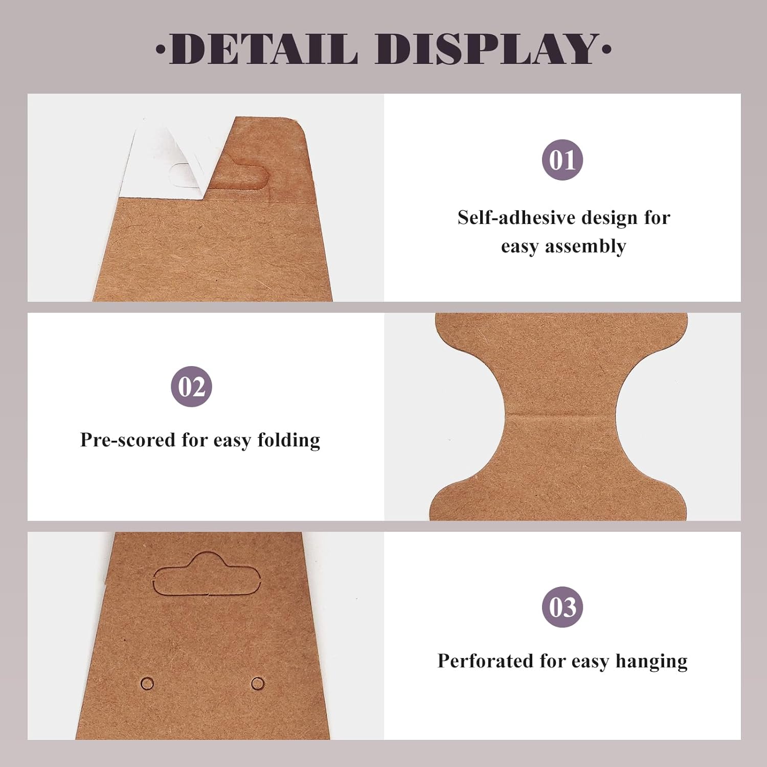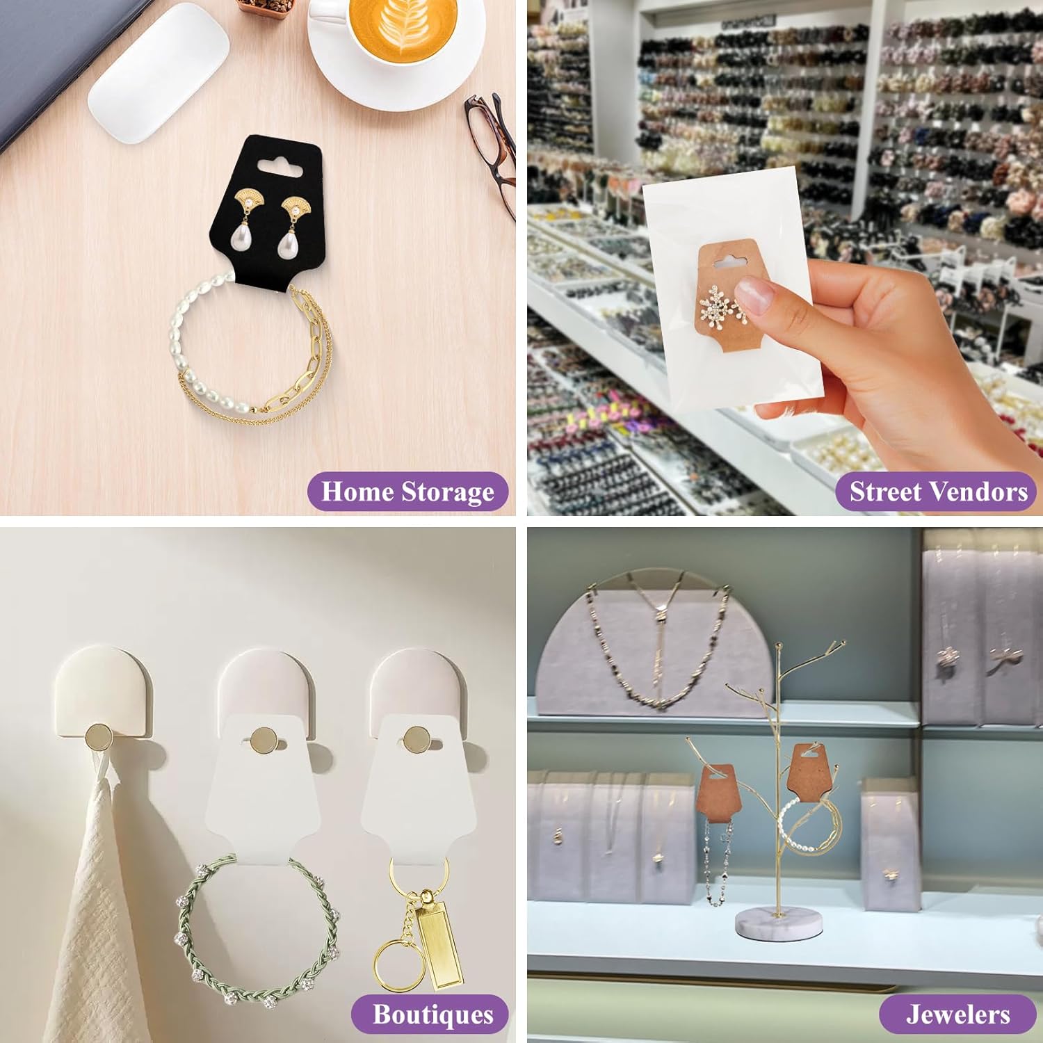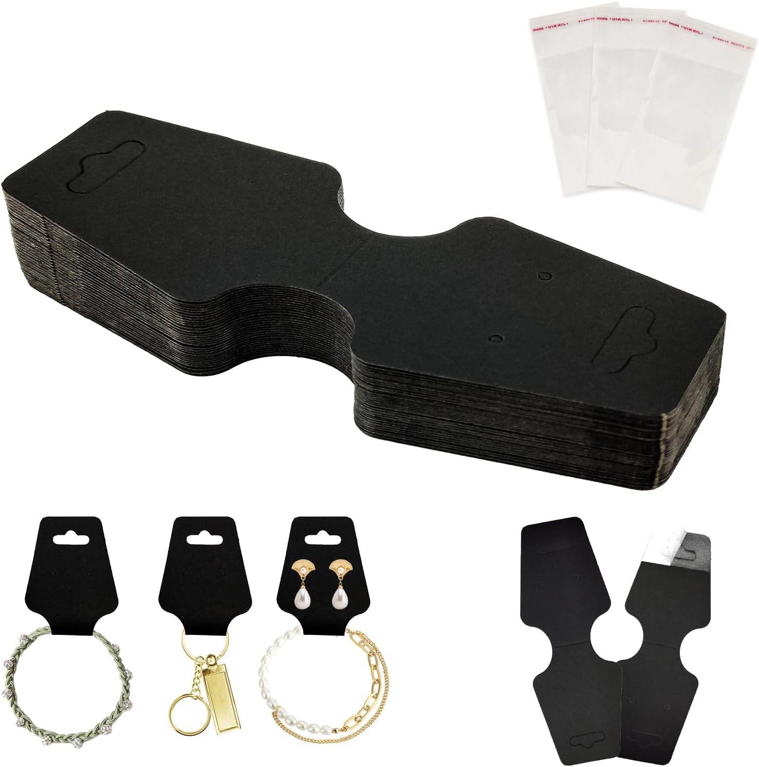 Versatile Display Cards: Perfect for displaying bracelets, necklaces, keychains, hairbands, and scrunchies; self-adhesive backing keeps items securely in place for both home organization and retail displays