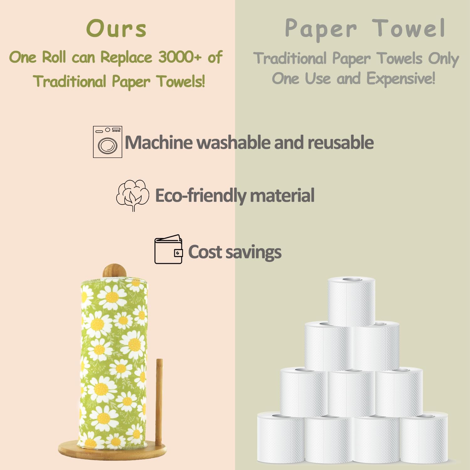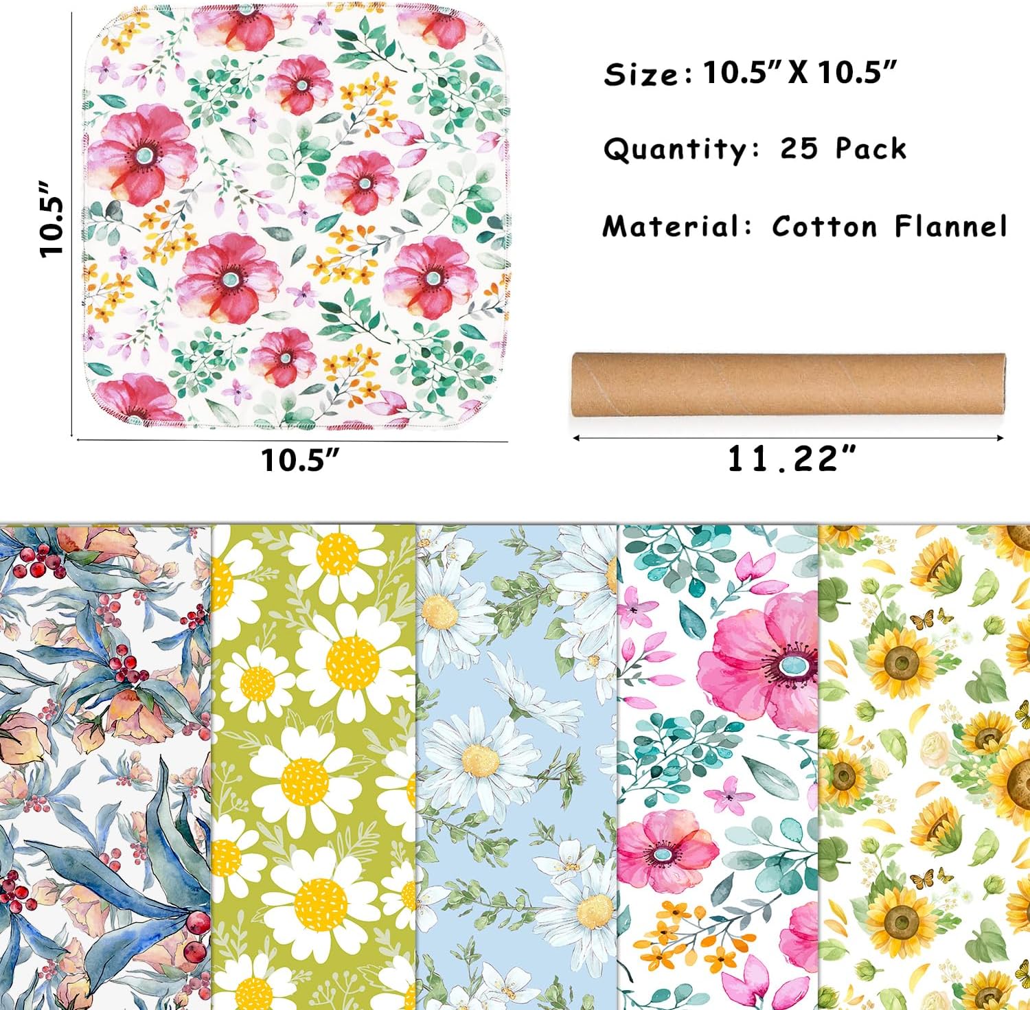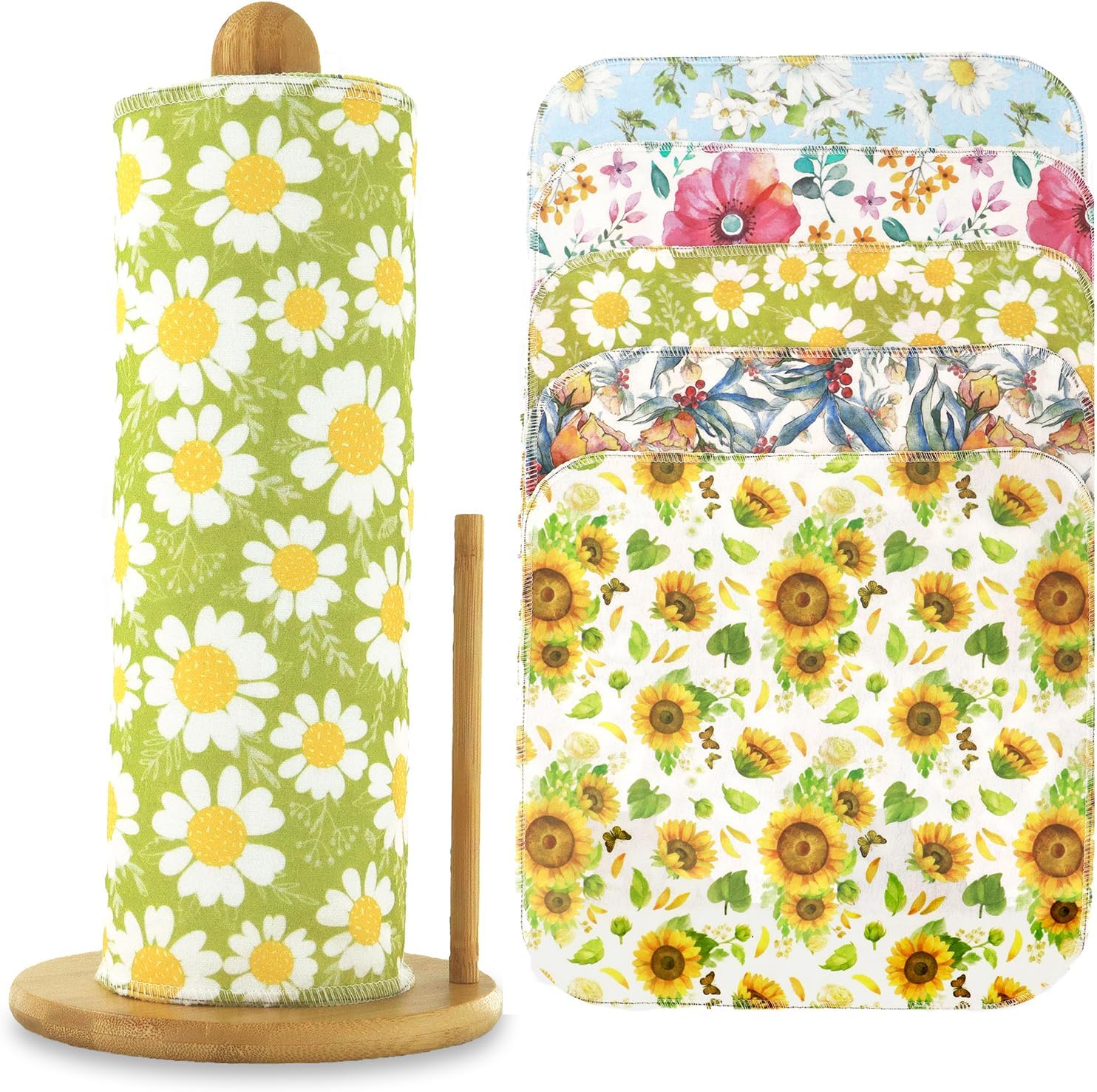25 Pack Reusable Paper Towels, Paperless Towels Roll Washable Cotton Cloth for Kitchen Towels Zero Waste Products Alternative Paper Towels Alternative (Flower-A)