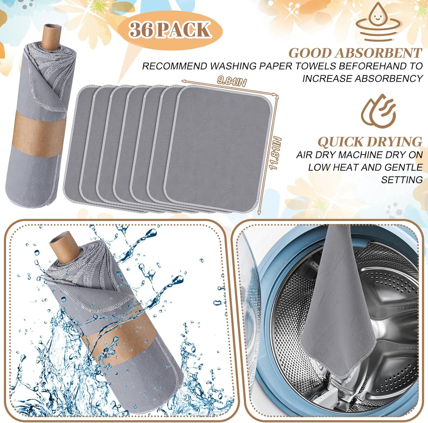 36 Piece Set: each pack comes with 36 rolls of reusable towels; They are suitable not just as kitchen tissue holders, but function equally well in the bathroom as napkin holders or as tea towels