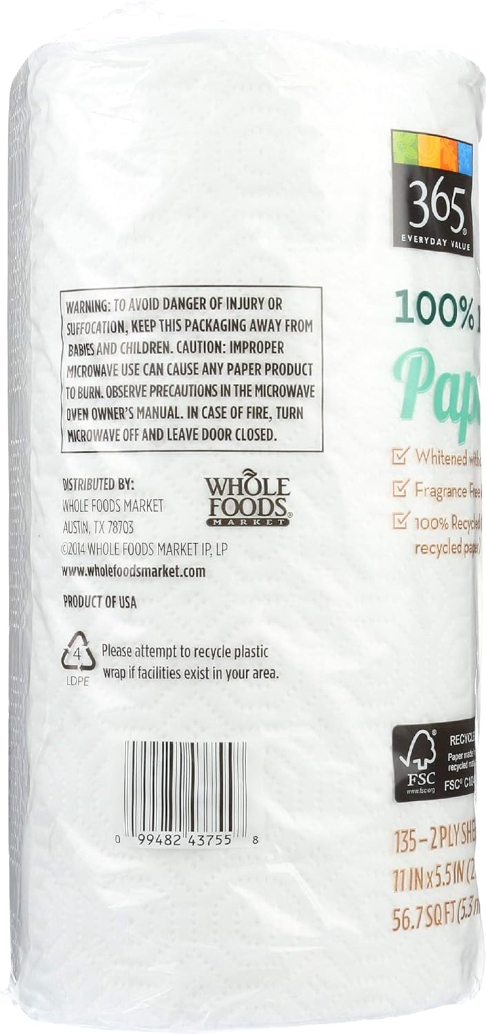 365 Everyday Value, 100% Recycled Paper Towels, Choose Your Size (Jumbo Roll), 1 ct