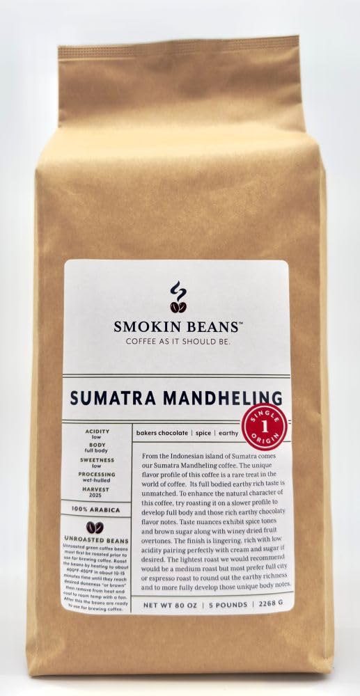5-Pound Sumatra Mandheling, Unroasted Green Arabica Coffee Beans, Fresh Current Crop Specialty Grade, Roast the Beans Yourself at Home on Your Roasting Equipment Prior to Using for Brewing Coffee