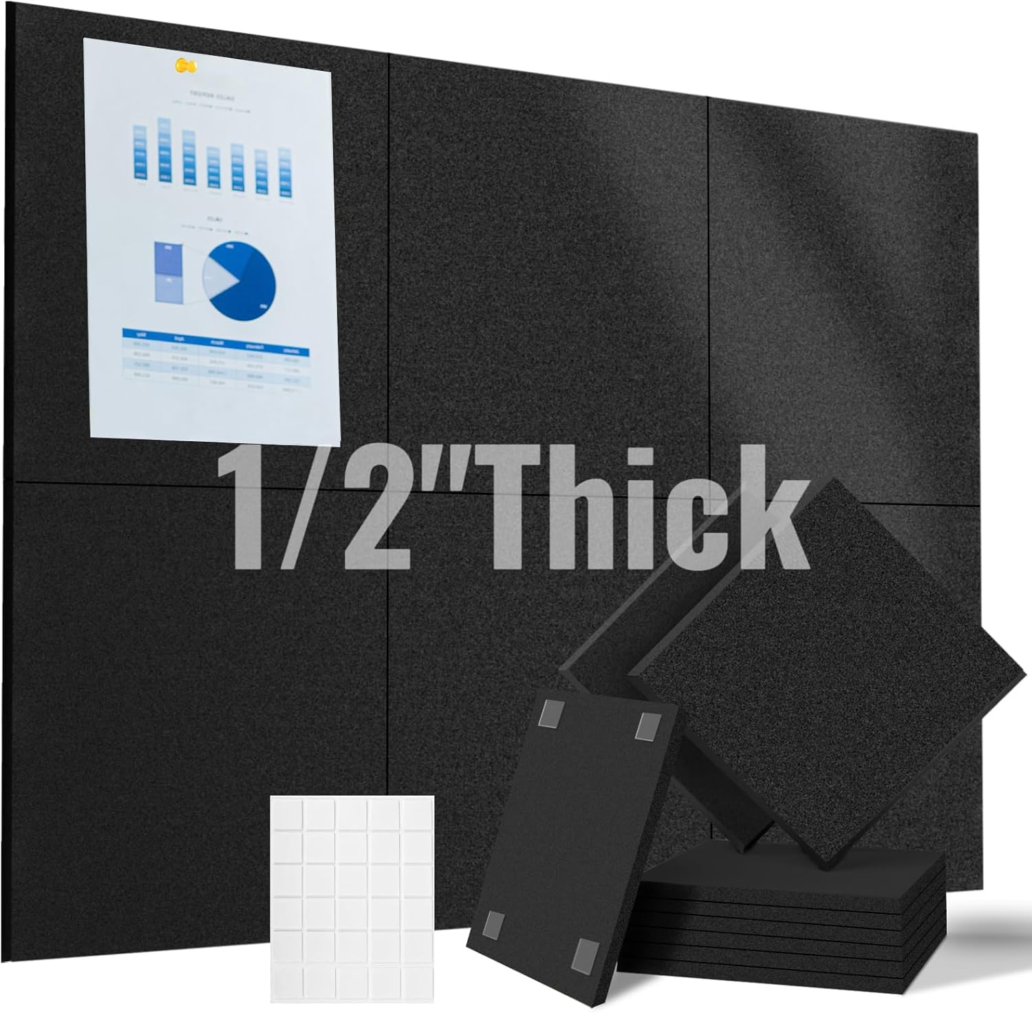 High-Density 0.5″ Extra Thick: This 6 Pcs 11.8″*11.8″*0.5″ bulletin board features an extra thick 0.5″ design, allowing bulletins to be inserted without touching the wall behind, ensuring stability and durability.