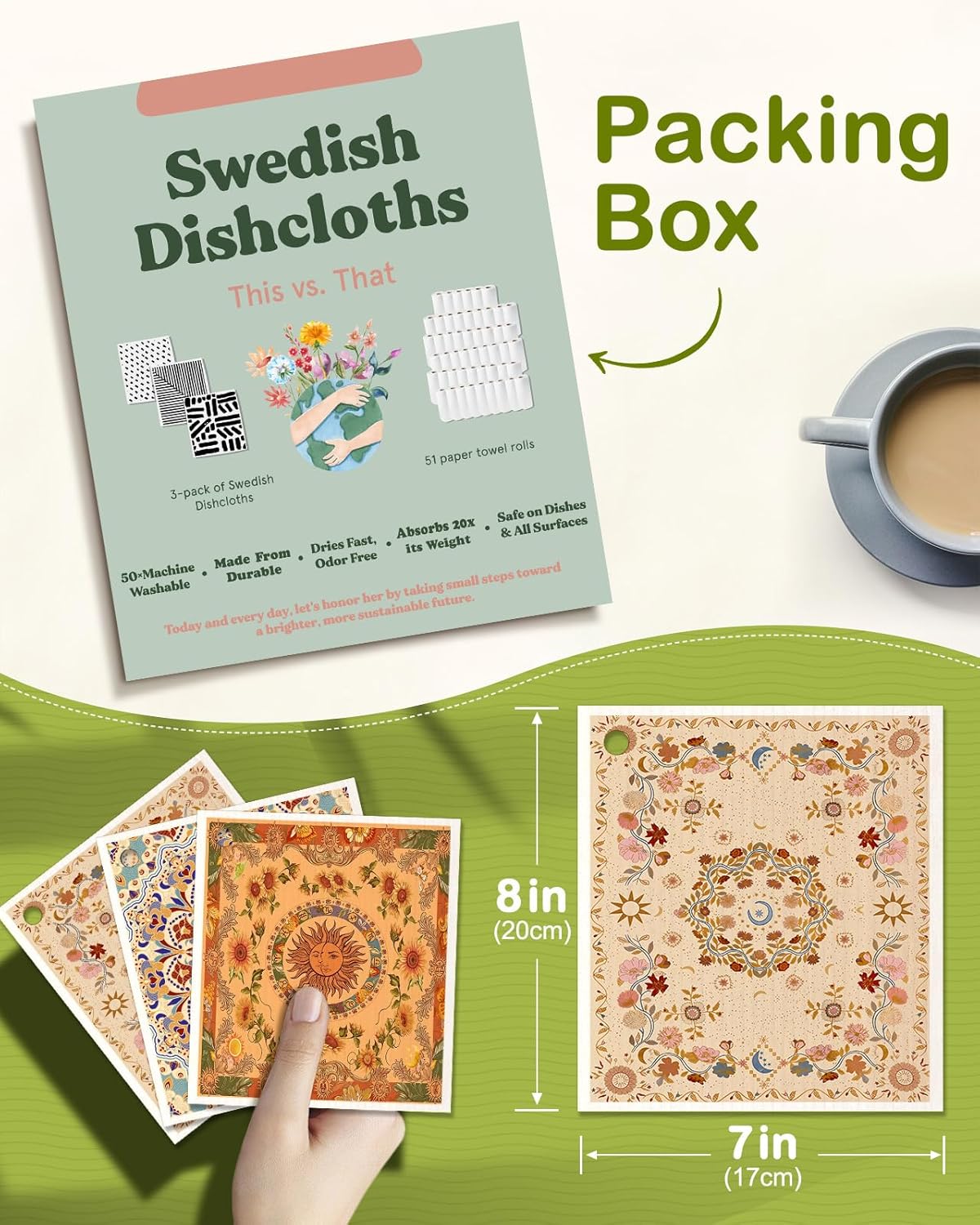 SPECIAL HOLE: This swedish rags design with small hole for easier hanging. And this swedish wipe set design with a beautifully packaged and makes the good set for birthdays, holidays, housewarming parties, and other special occasions