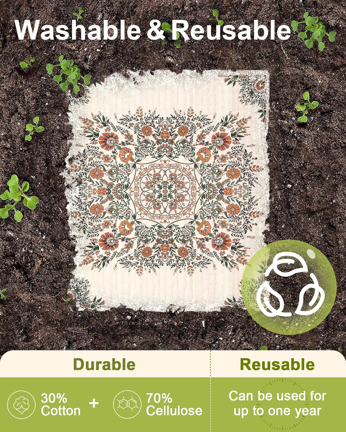 CLEAN EASILY: This washable sponge cloths is easily wash cloths in the dishwasher, washing machine, without them becoming brittle or fading. With proper care these dish towels can last up to few months, makes a unique zero waste thing