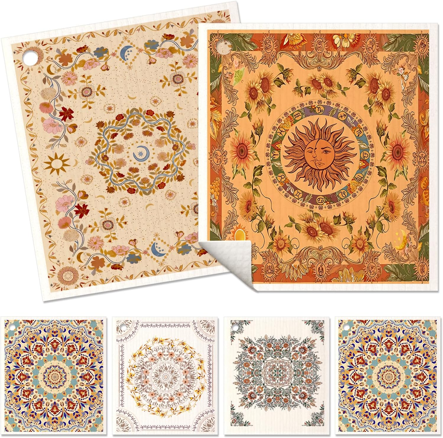 6 Pack Swedish Dishcloths for Kitchen – Reusable Dish Cloths for Washing Dishes Absorbent Cute Funny Kitchen Towels Cleaning Sponge, Bohemi