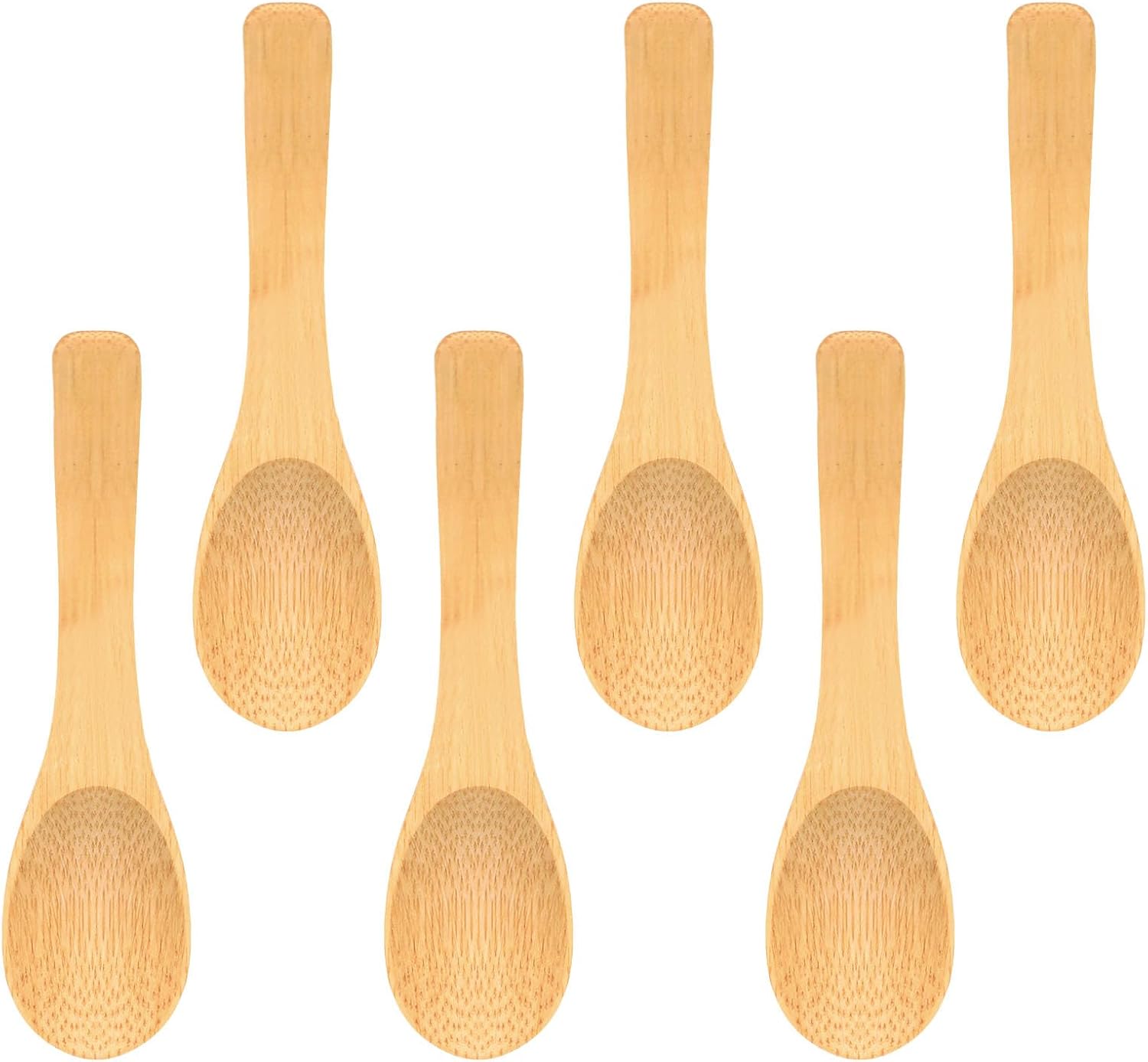 6 Pcs Uncoated Wooden Spoons for Honey, 3.6 Inch Mini Handmade Bulk Tiny, Little Wooden Serving Table Spoons Set, Natural Bamboo Eating for Honey, Sugar, Salt, Spices, Easy to Clean & Maintain