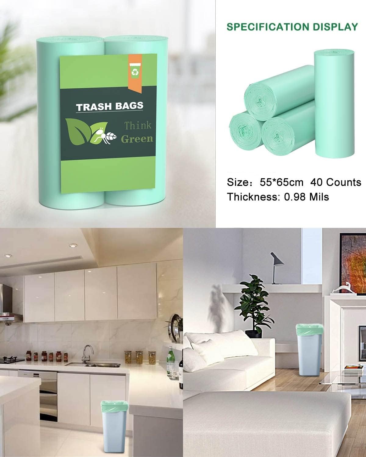 Our small trash bags are all made of PSM (100% corn starch extract), with the U.S. standard ASTM D6400 PSM Based On Natural Renewable Plant Starch Extract, and it can be composted in industrial composting facilities without causing damage to the environment.