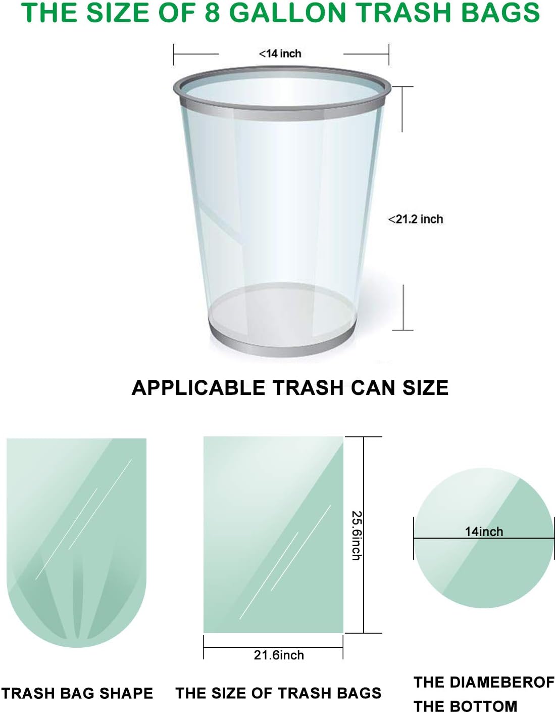 Perfect Fit For Medium Trash Cans 40 Counts: These compost bags are 8 Gallon garbage bags 40 Counts,The Dimension((L*W) Of The Liner Is 21.7″*25.6″, 8 Gallon tall kitchen trash bags fit 20-30 liters trash can and different shapes (circular round, square, rectangular border) Perfect for indoor and outdoor garbage collection.
