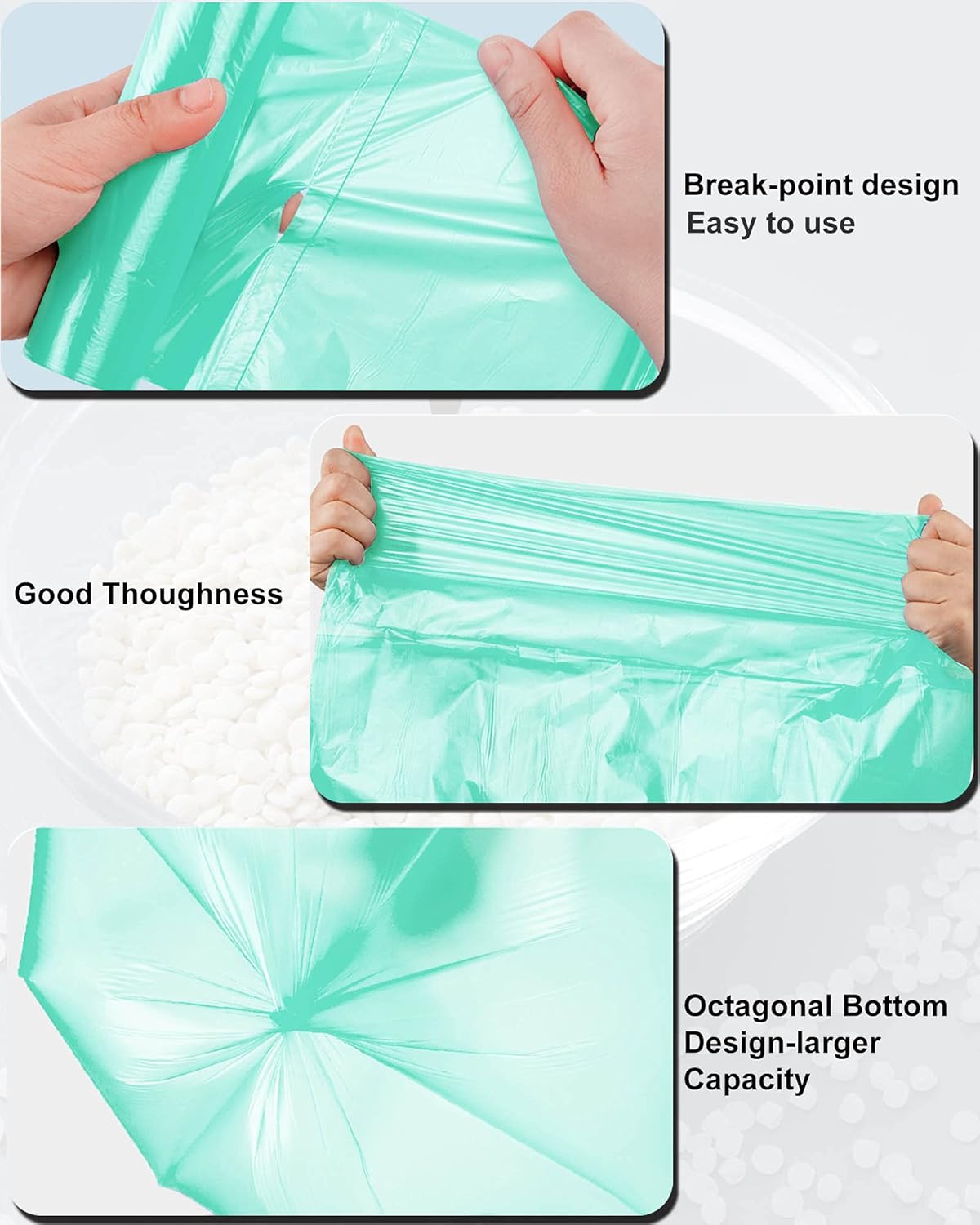 Extremely Thick and Convenient: These 8 Gallon Kitchen trash bags are packed in a very delicate and light way that is convenient to store or carry. In terms of detail, The breakpoint design makes it easy to separate them and avoid the trouble of tearing. a thicker 0.98 mil design and are not easy to tear. Tear resistant, leak proof, perforated, compact.