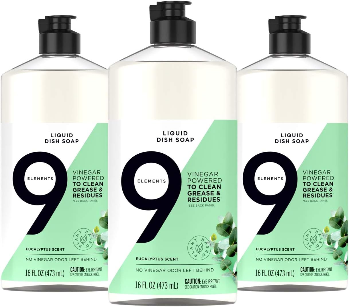 9 Elements Dishwashing Liquid Dish Soap, Eucalyptus Scent Cleaner, 16 oz Bottles (Pack of 3)