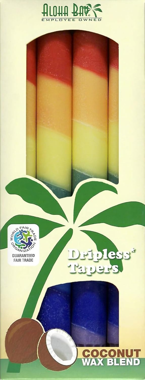 Aloha Bay Coconut Taper Candle – Dripless, Unscented 9 Inches w/ 9-Hour Burn Time & Pure Cotton Wicks for a Clean, Steady Glow – Artful Design for Special Occasions | 4-Pack | Rainbow