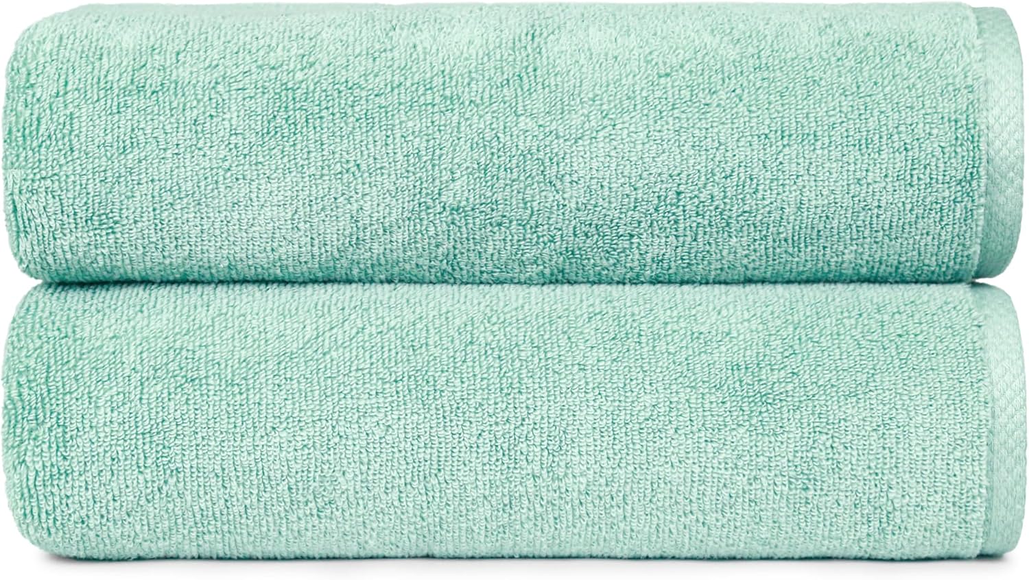 Amazon Basics Quick-Dry Bath Towels – 100% Cotton, 2-Pack, Seafoam Green