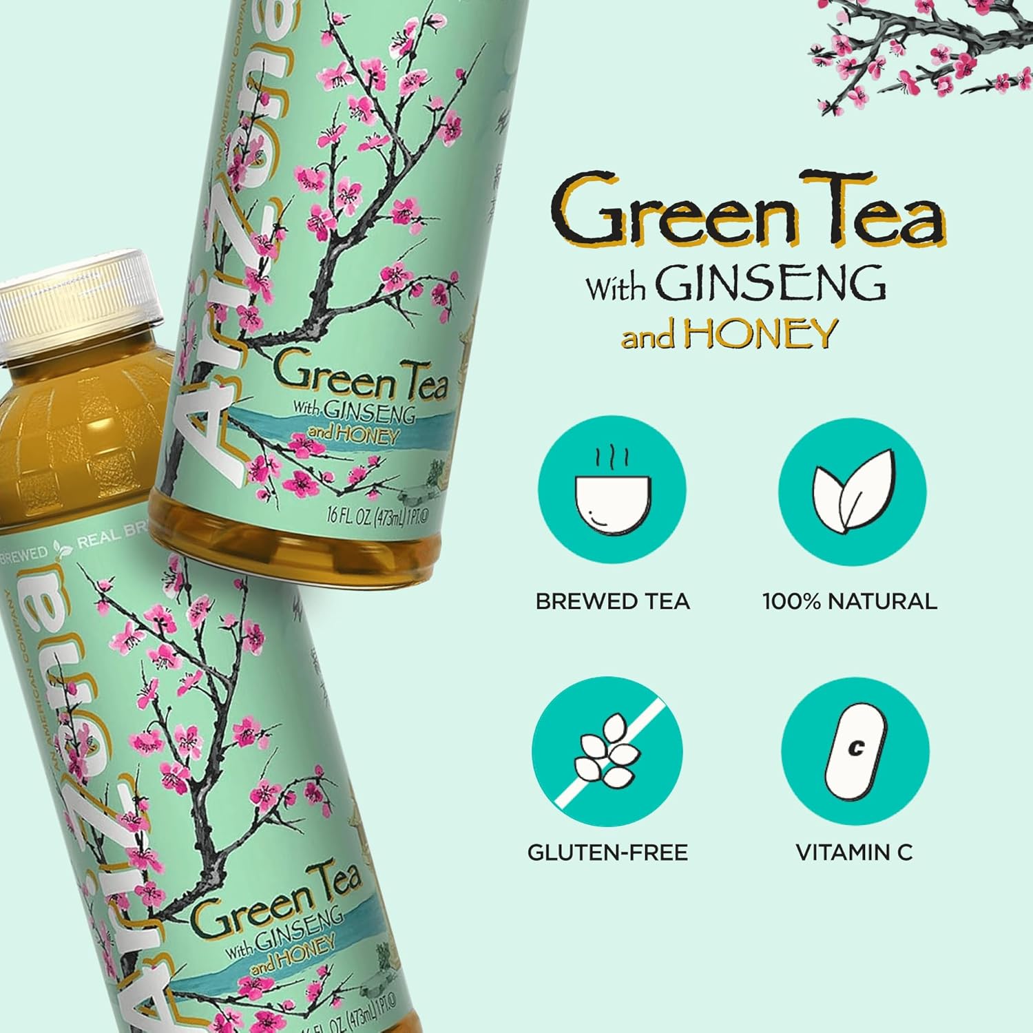 Arizona Green Tea with Ginseng and Honey – 16 Fl Oz (Pack of 12)