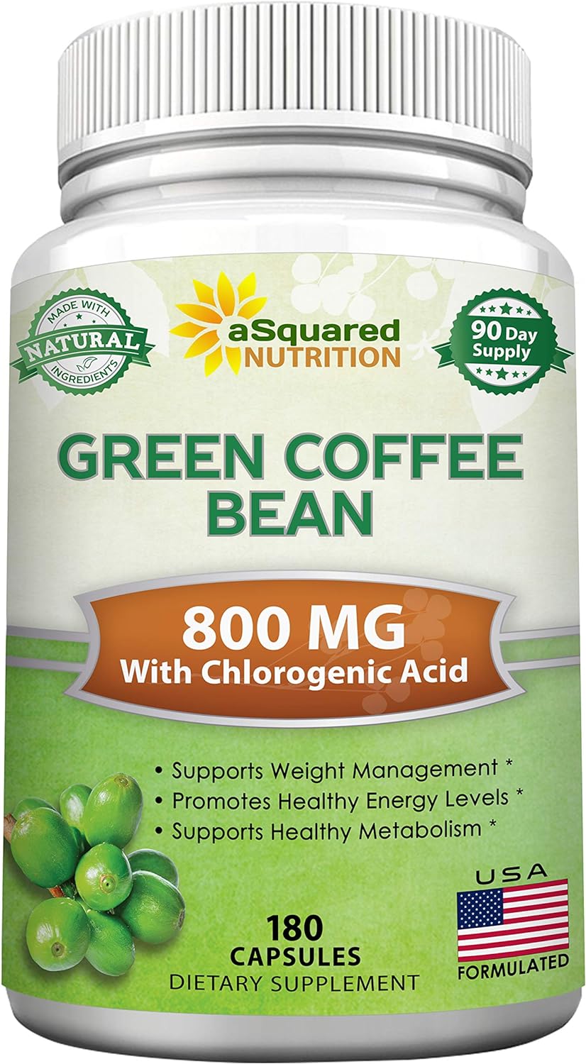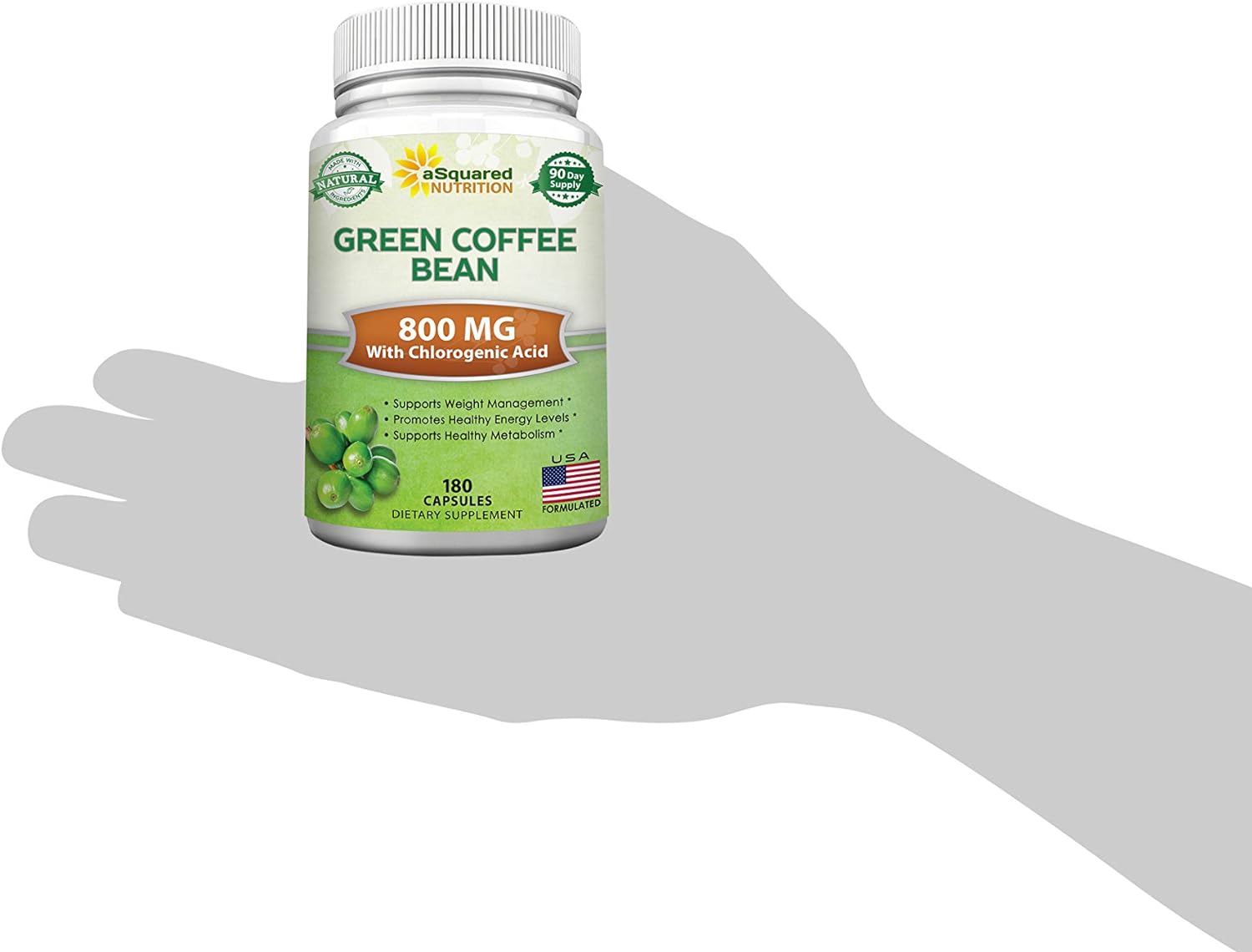 aSquared Nutrition Natural Green Coffee Bean Formula-180 Capsules-Max Strength GCA Antioxidant Cleanse for Pure Weight Loss, 800mg per Pill-Chlorogenic Acid-1600mg Daily Supplement, Healthy Fat Burner