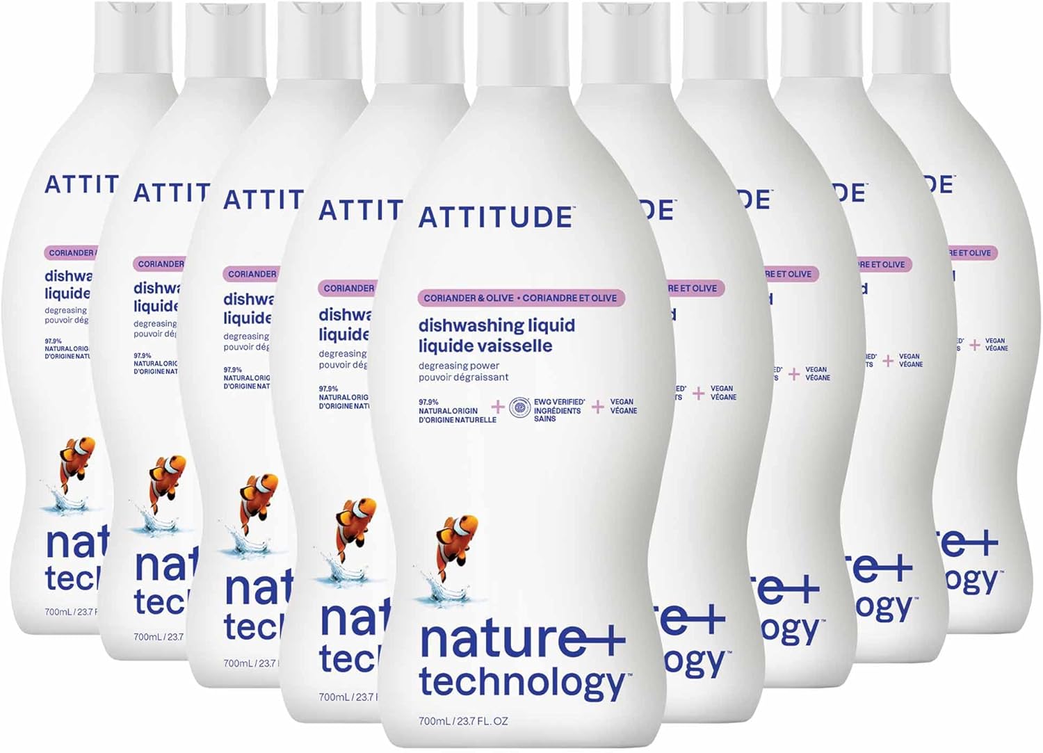 ATTITUDE Dish Soap, EWG Verified, Plant-Based & Vegan Dishwashing Liquid, Naturally Derived, Olive & Coriander Scent, 23.7 Fl Oz (Pack of 9)
