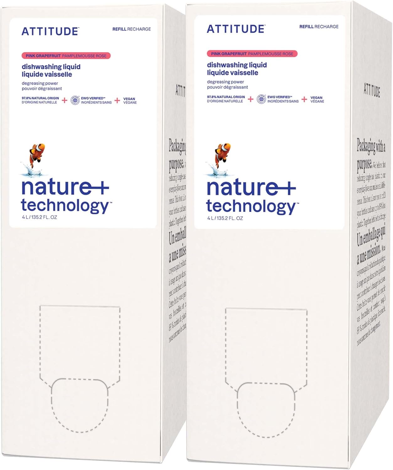 ATTITUDE Dish Soap Refill, EWG Verified, Plant-Based & Vegan Dishwashing Liquid, Naturally Derived, Pink Grapefruit, 135.26 Fl Oz (Pack of 2)
