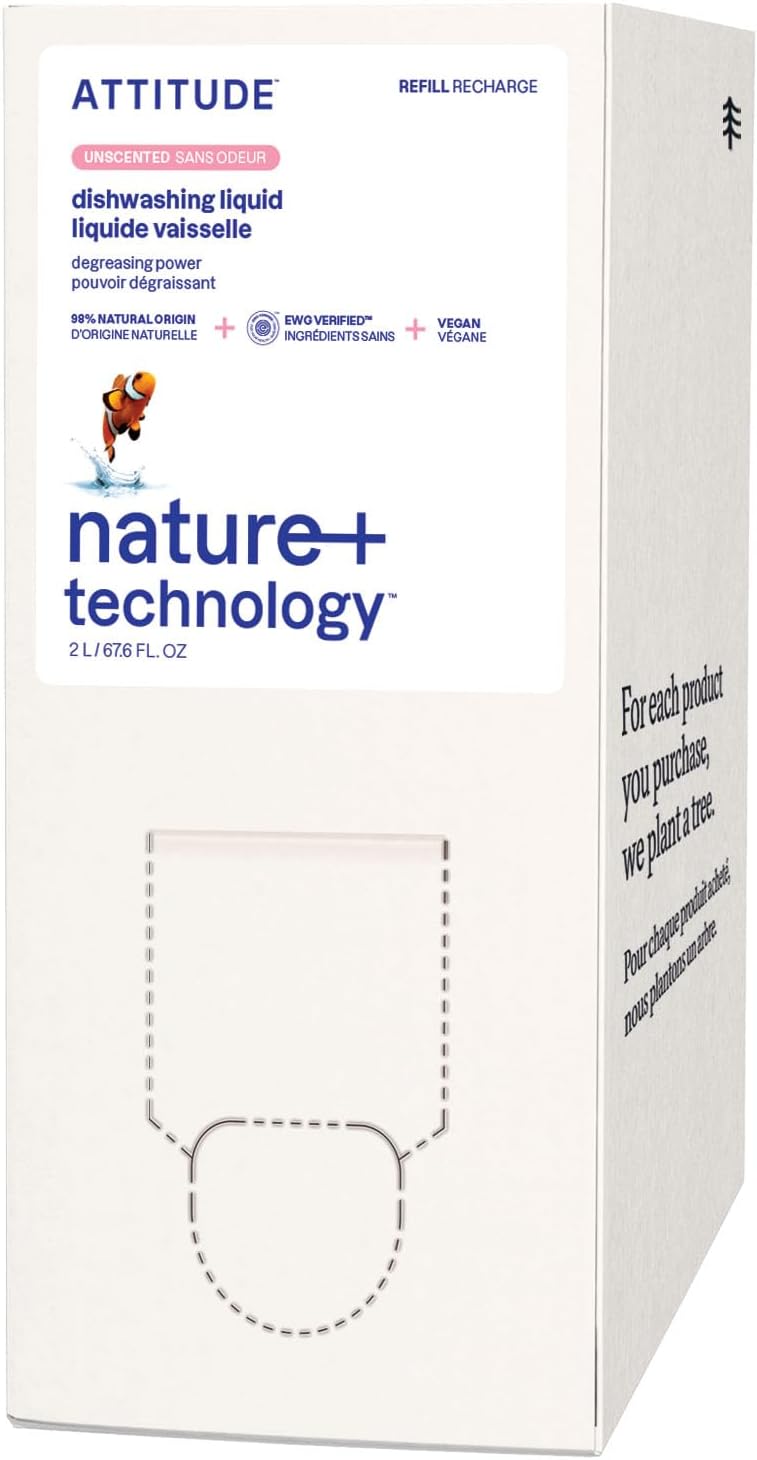 Be the first to review “ATTITUDE Dish Soap Refill, EWG Verified, Plant-Based & Vegan Dishwashing Liquid, Naturally Derived, Unscented, 67.6 Fl Oz”