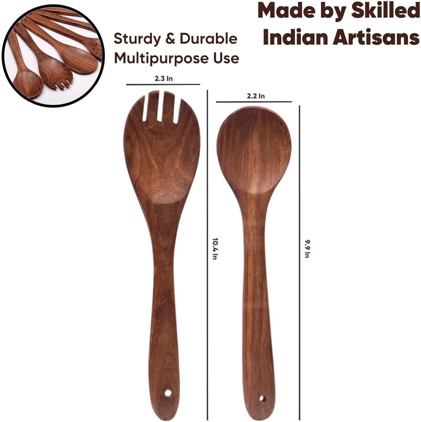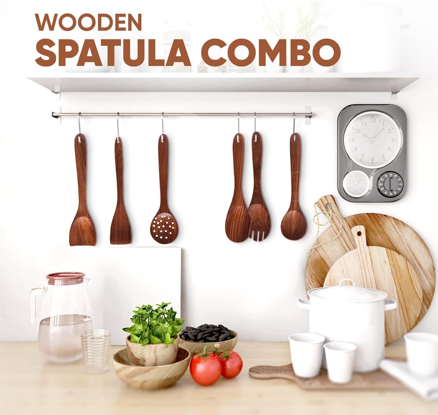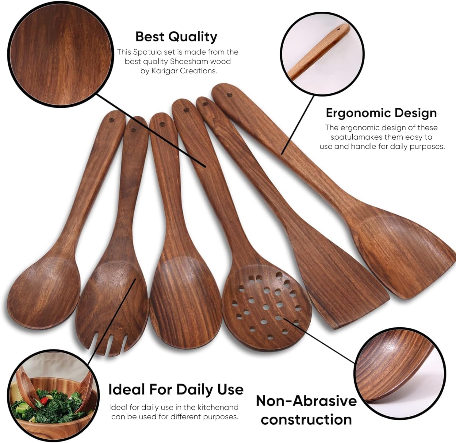 AURUM Wooden Spatula Spoons Set for Cooking & Serving || Teak Wood Spatulas Utensil Set for Nonstick Pans & Cookware (Set of 2)