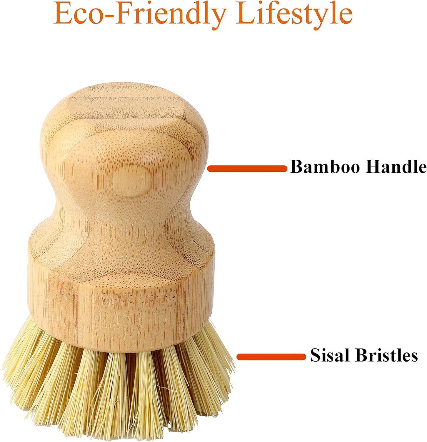 Bamboo Dish Scrub Brush, Kitchen Dish Scrubber Brush Set for Cleaning Dishes,Sink, Cast Iron Pan/Pot