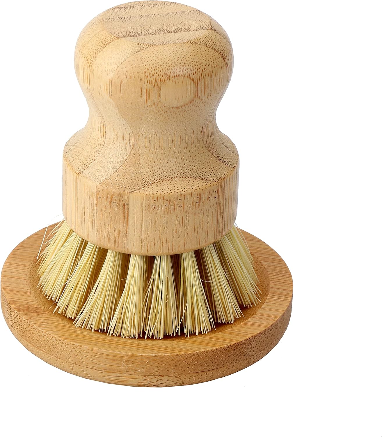 Suitable for washing dishes, cast iron pans, stubborn stains, vegetables & fruits.Made of bamboo and sisal that are good for the environment.Brush stays dry easily with special designed wooden dispensing base.Package including : 2 * dish scrubber brush + 1 * wooden soap dish.