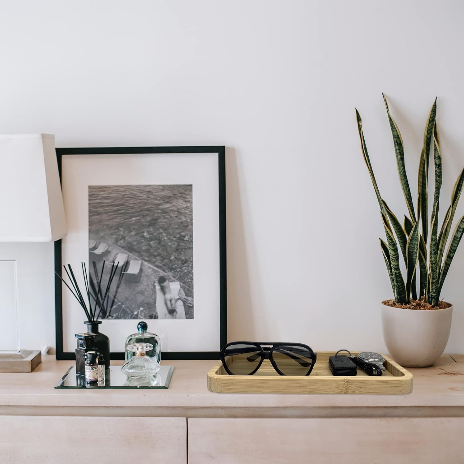 BAMBOO TRAYS ARE USED IN MANY SCENARIOS: The bamboo vanity tray is a versatile and eco-friendly accessory that can be used in a variety of settings, including your bathroom, bedroom, or entryway. This sleek and stylish tray offers the great spot to store and organize all of your small items and accessories.