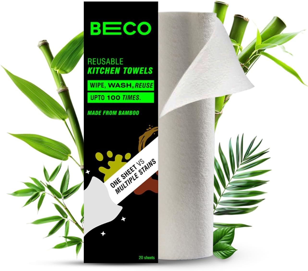 Beco_Reusable Bamboo Kitchen Towel/Tissue Roll (Reusable upto 2000 times)- 20 sheets|Soft & Highly absorbent| Ecofriendly-No Trees Cut| Better alternative to Paper Tissue Roll