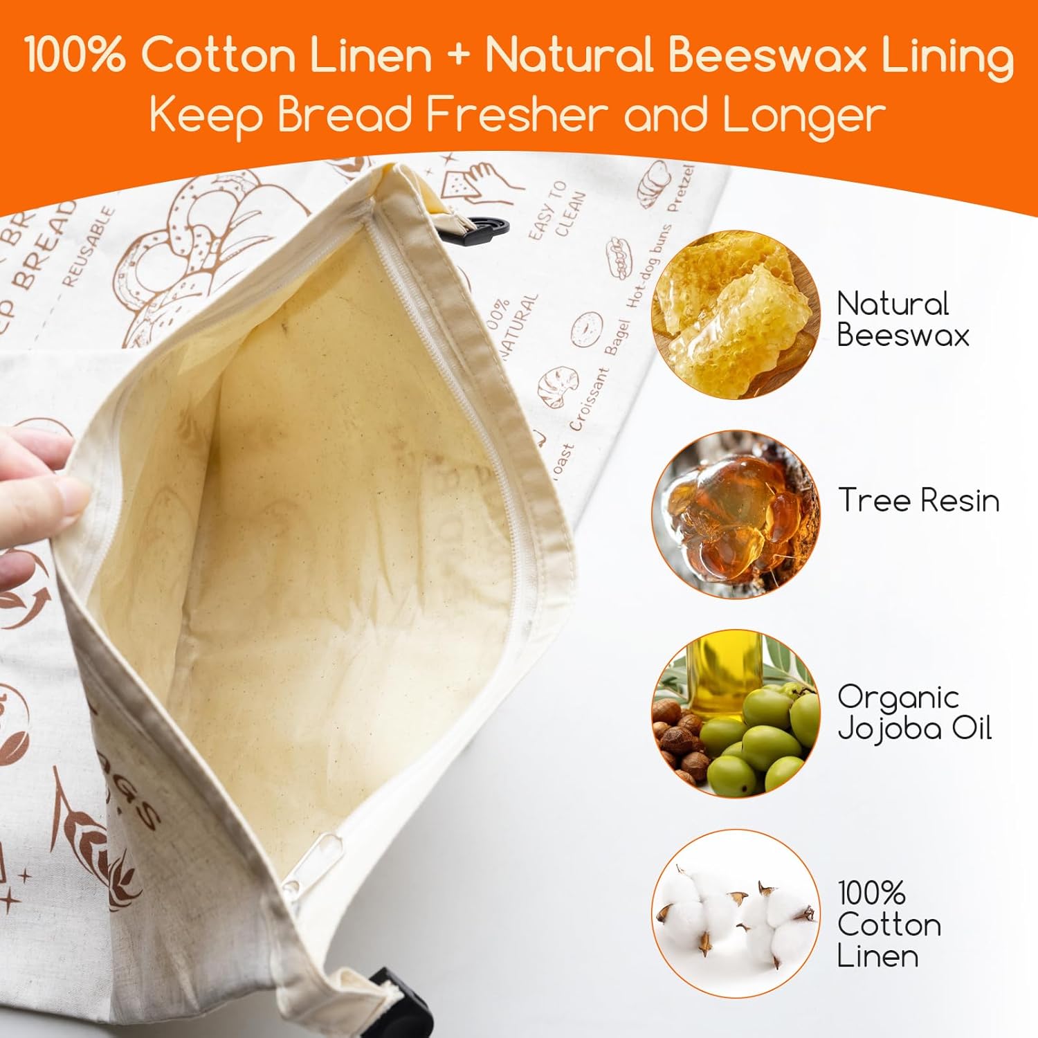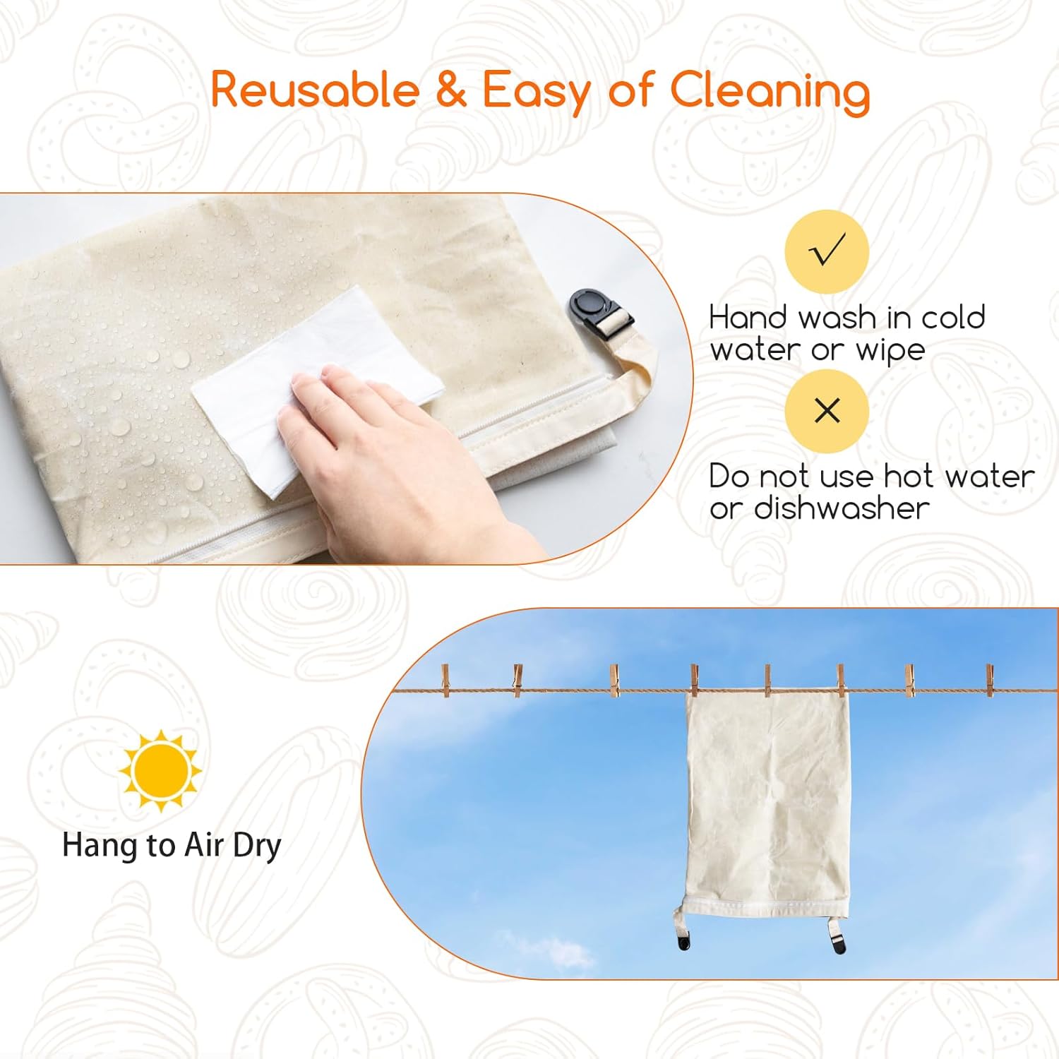 Easy to Clean and Maintain: The reusable design of our bread bags makes cleaning a breeze—simply hand wash with cold water and let them air dry. Please note that these beeswax bag options are not suitable for hot water or dishwashing.