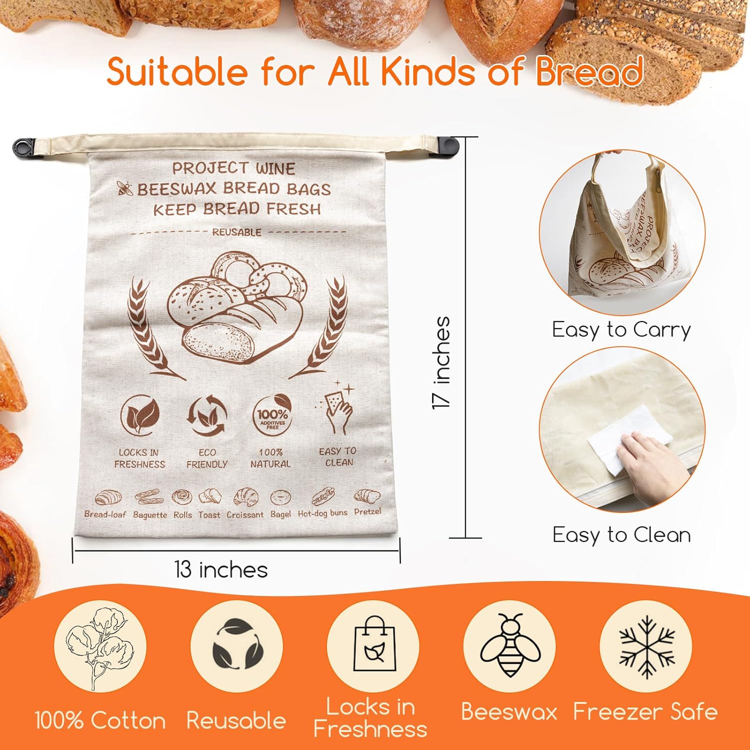 Optimal Freshness Retention: Made from breathable linen combined with an organic beeswax lining, these bread bags form a breathable barrier that locks in moisture, helping to keep your sourdough bread and other baked goods fresh. Generously sized at 13×17 inches, they accommodate various types of bread.