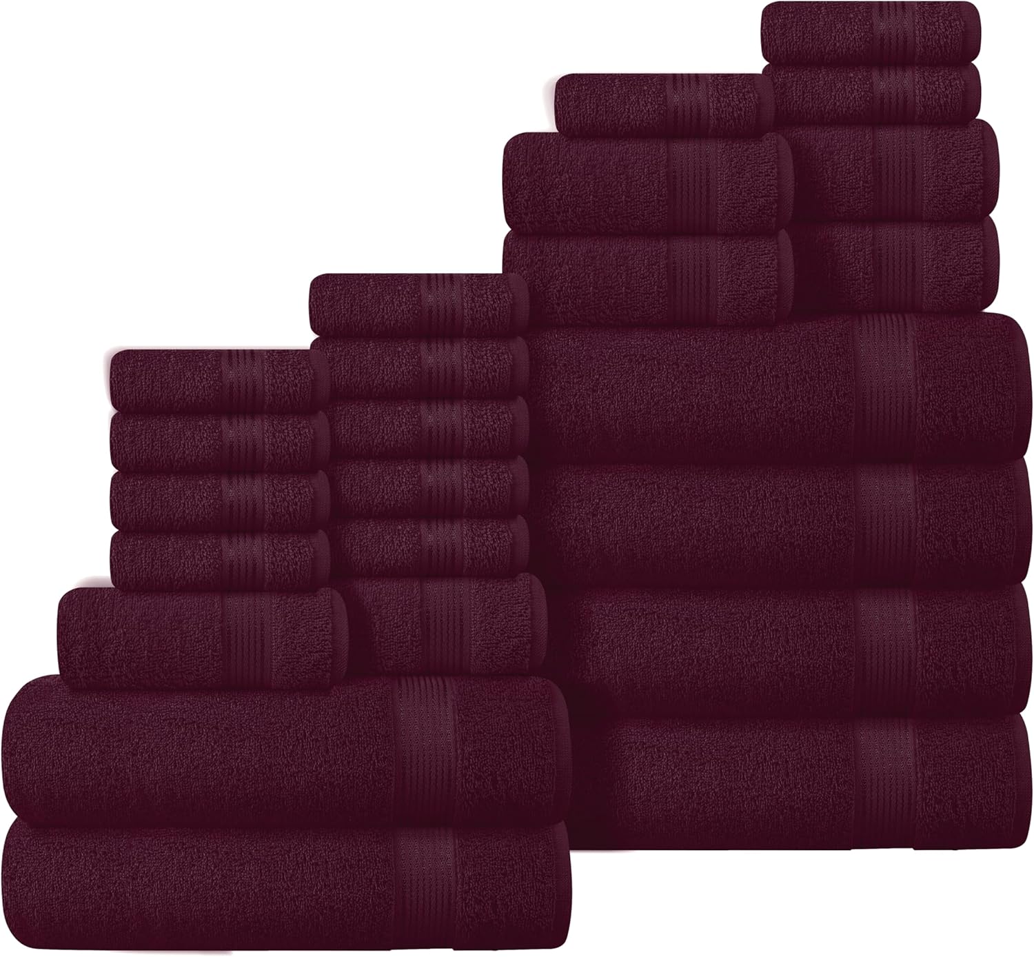 Belizzi Home 100% Cotton Towel Set, Contains 6 Soft Bath Towel, 6 Hand Towels, 12 Wash Cloths – Compact Absorbent Lightweight & Quickdry Towels for Bathroom – 24 Piece Bathroom Towel Set – Burgundy