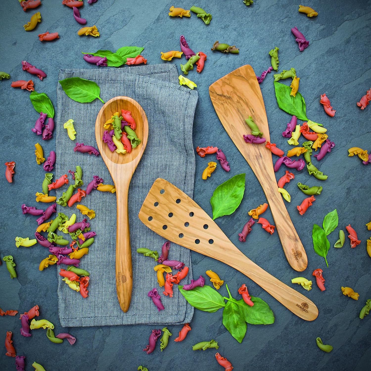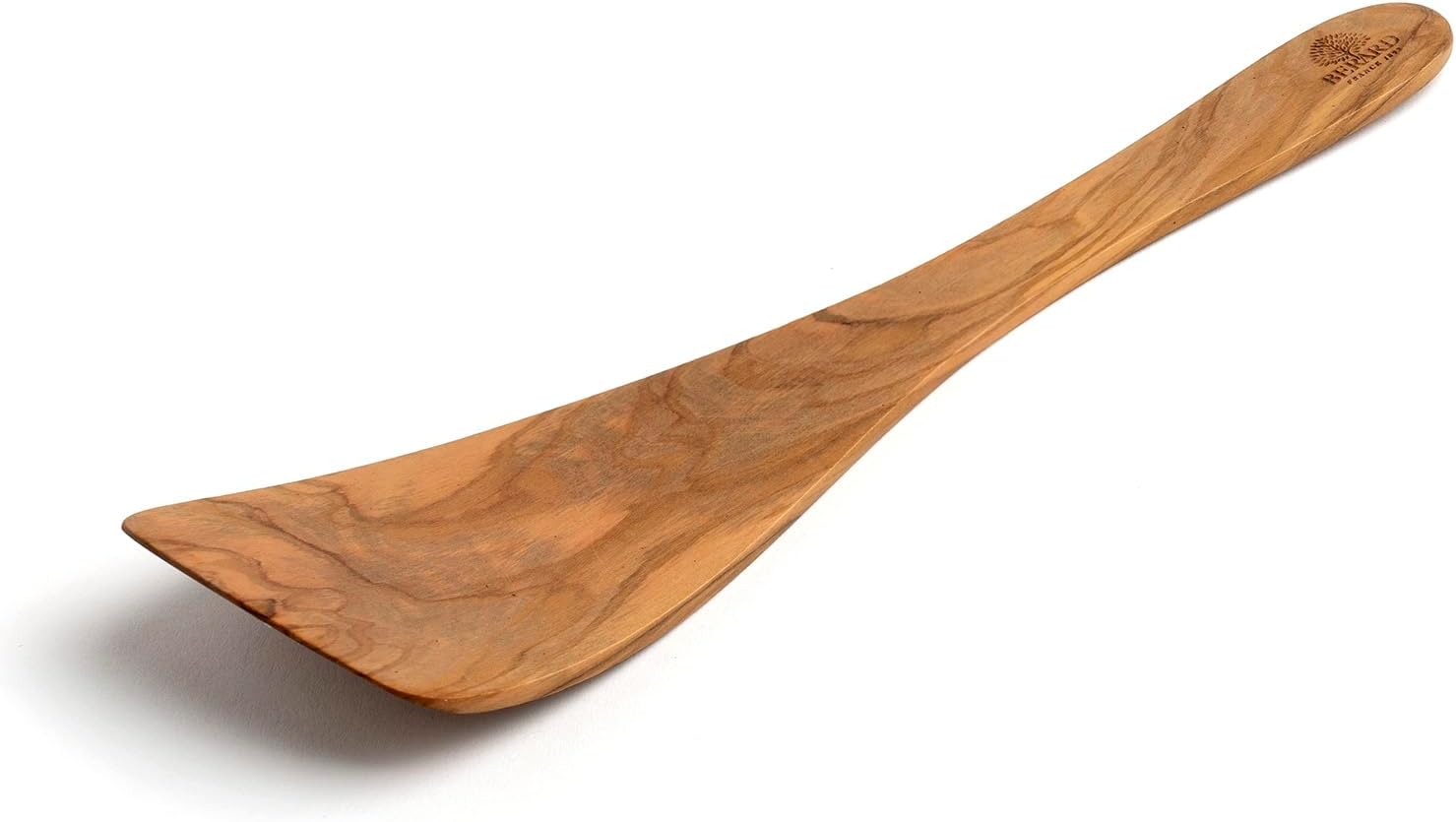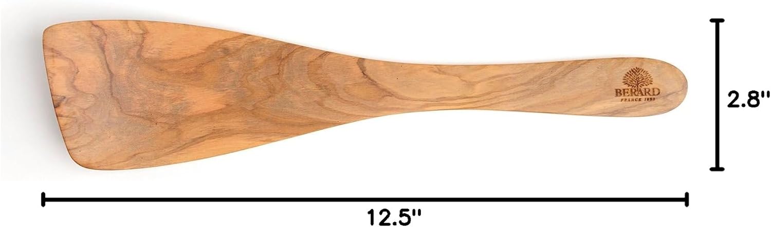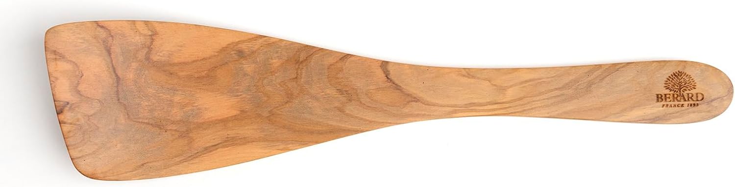Made in France from a single piece of the finest olive wood, this handcrafted spatula offers original beauty (no two are identical) and exceptional convenience in the kitchen. The gently curved spatula provides a long handle and a rectangular-shaped head that works well for flipping pancakes, slipping under food, and transporting food to a plate or serving platter. The use of wood not only brings the beauty of nature indoors, but it has also been found to be more hygienic than plastic. Furthermore, out of respect for the environment, the particular olive wood used by Berard comes from sustainably managed forests, so the spatula can be enjoyed for years to come and with peace of mind. The unit features a lovely satin finish, made up of a combination of mineral oil and beeswax, which protects the wood and offers added strength and resilience. Safe to use with all cookware, the spatula measures approximately 12-1/2 by 2-4/5 by 1/5 inches and should be hand washed only and dried thoroughly. From the ManufacturerBerard is located in the mountains of Royans, which border the northern edge of Provence in France.