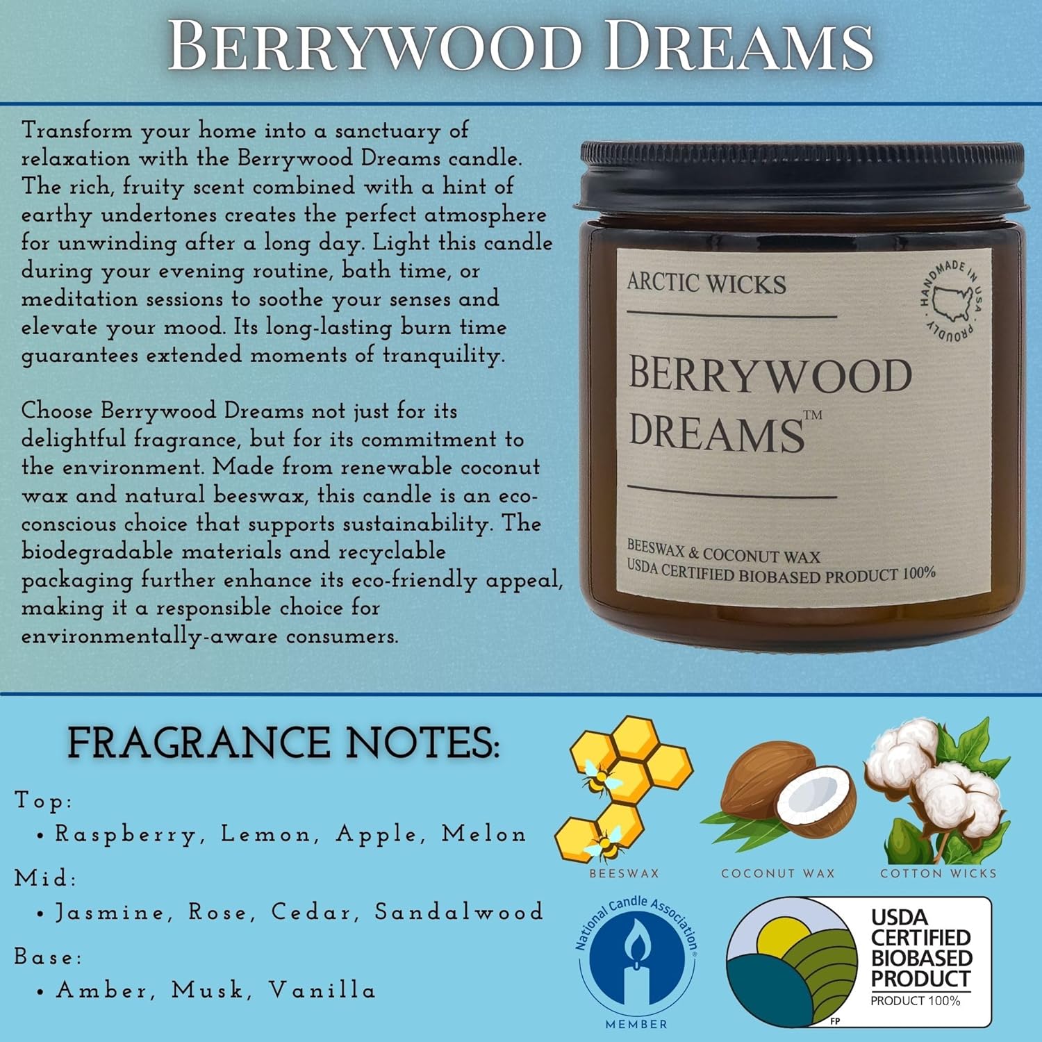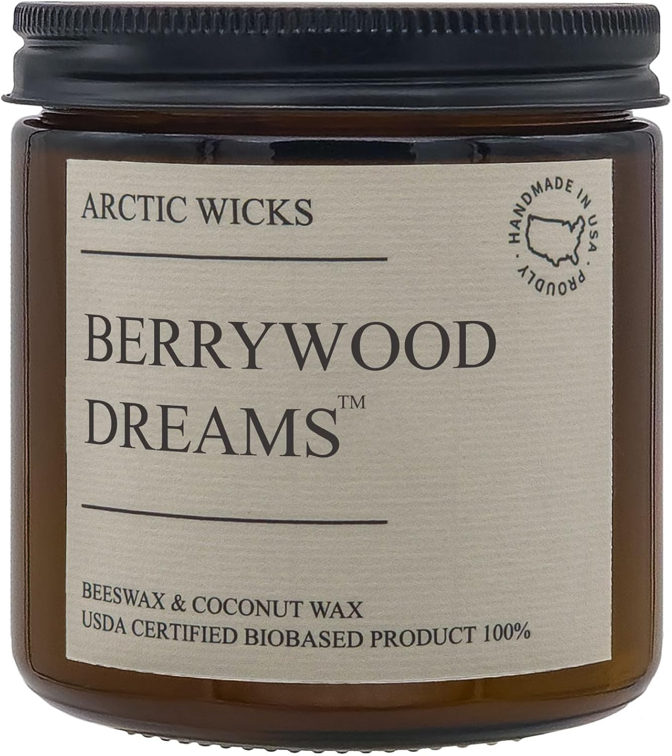 Berrywood Dreams Candle | Arctic Wicks 16oz Coconut & Beeswax Candles | Amber Scented Berry Candles for Fall, Winter, Holidays, Gifts, Non-Toxic, Sustainable | USDA Certified 100% Biobased