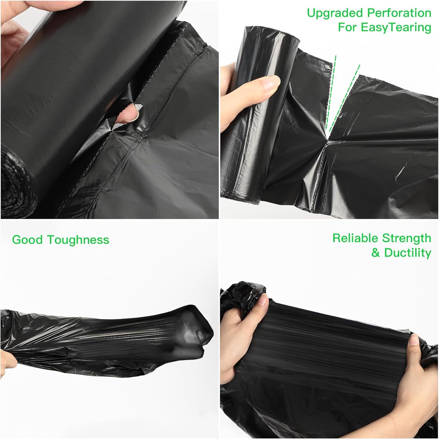 【Handy and Space-saving】 Our trash bags are so convenient for your daily use in different occasion with the light and space-saving packing. You can take a new trash bag easily by ripping along the tear line between one another