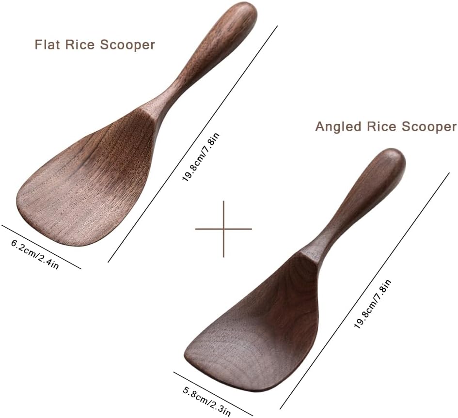 Black Walnut Wooden Cooking Spoons Set – 1 Flat + 1 Angled Rice Scooper, Durable & Eco-Friendly for Cooking & Serving – Perfect for Kitchen Enthusiasts and Gourmet Lovers