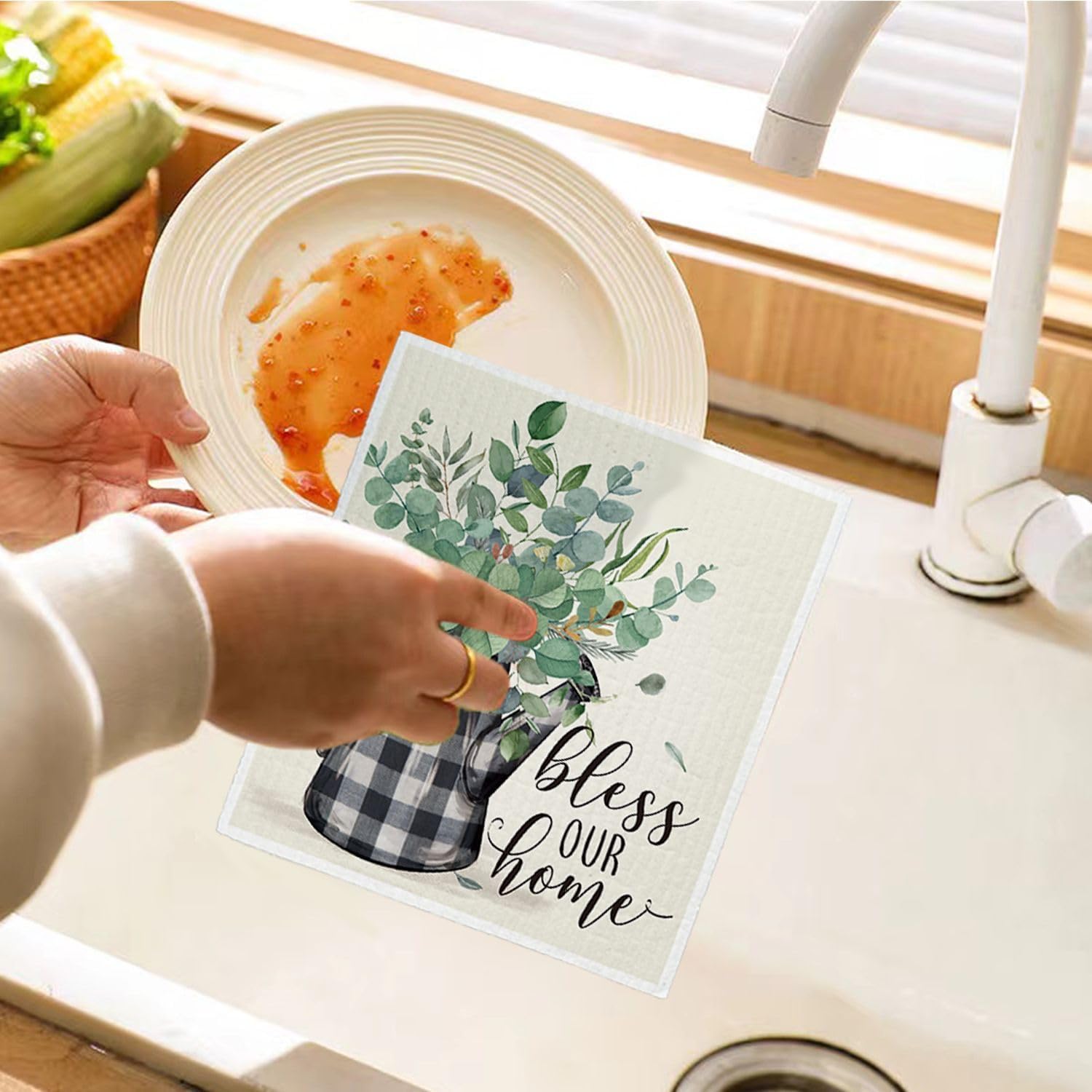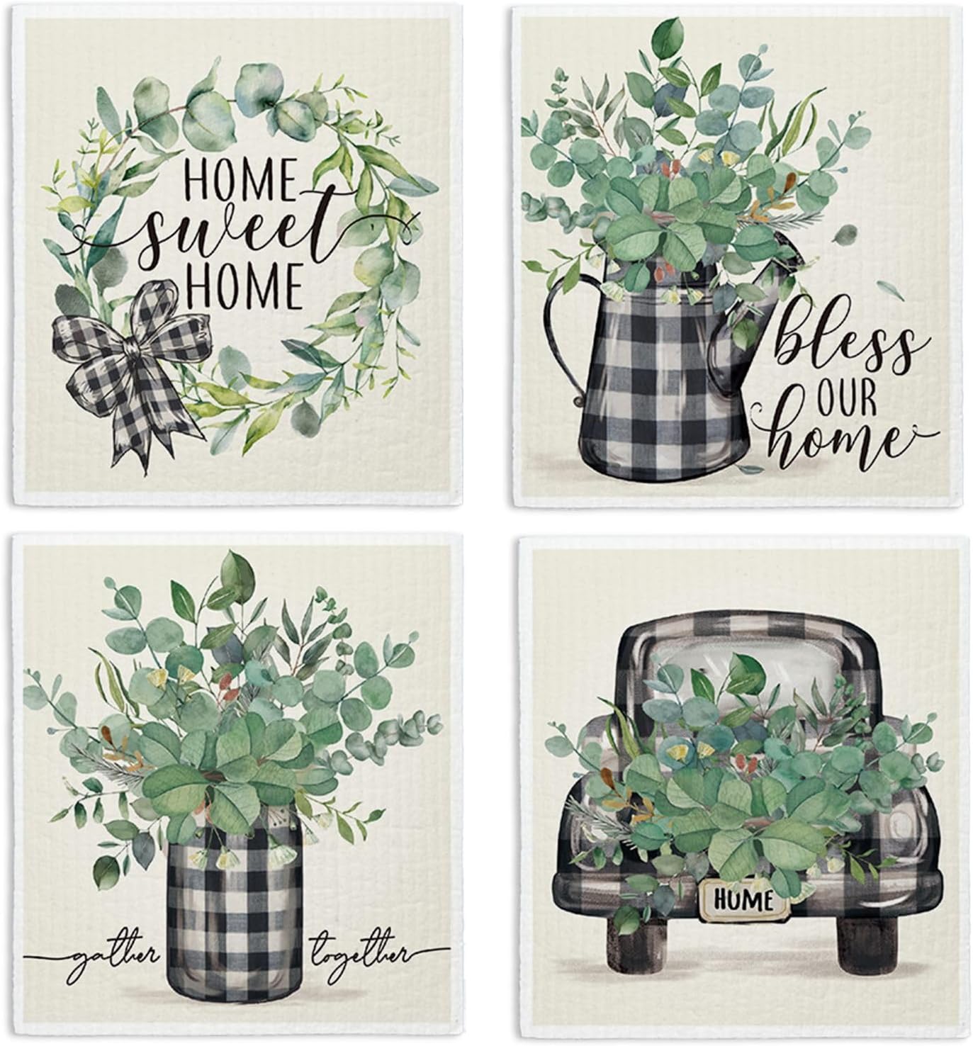Bless This Home Swedish Dishcloths for Kitchen, Home Sweet Home, Swedish Dish Cloths for Home, Papaya Reusable Paper Towels, 4 Pack Dish Towels for Kitchen, Reusable Paper Towels Washable