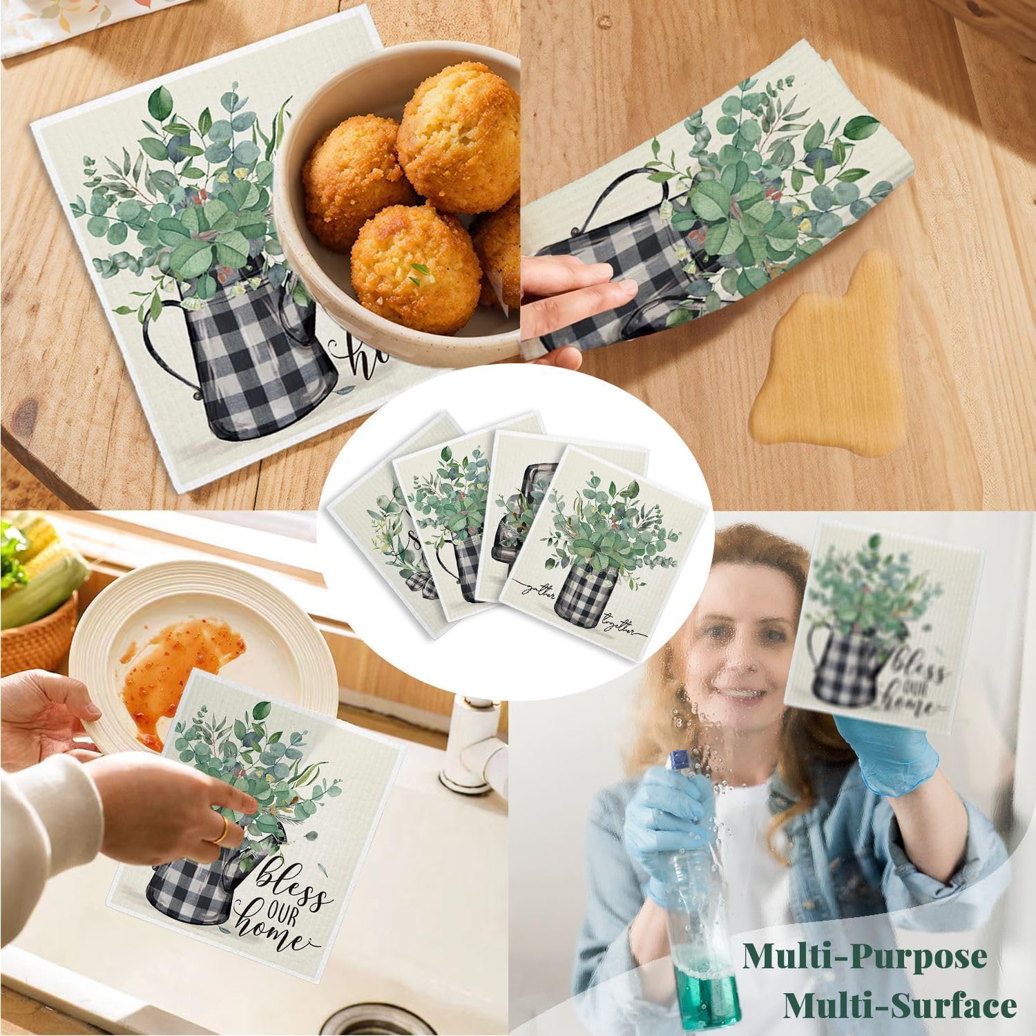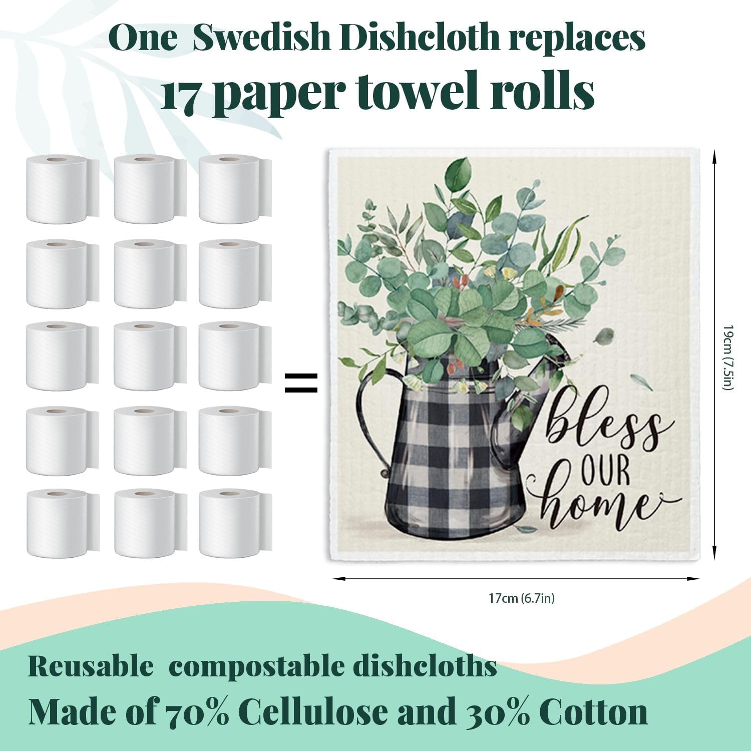 【swedish dishcloths characteristic】: One Swedish Dishcloth replaces 17 paper towel rolls,washable reusable,absorbs 20x its weight ,up to 1 year of use