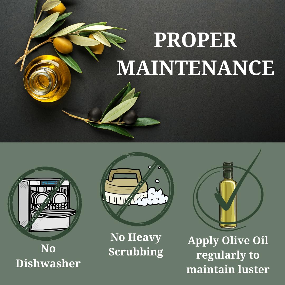 EASY MAINTENANCE: To keep your wooden serving spoon in pristine condition, simply hand wash with mild soap and warm water. Dry thoroughly and occasionally apply a light coat of olive oil or natural mineral oil to preserve its natural luster, ensuring the longevity of this sustainable olive wood utensil.