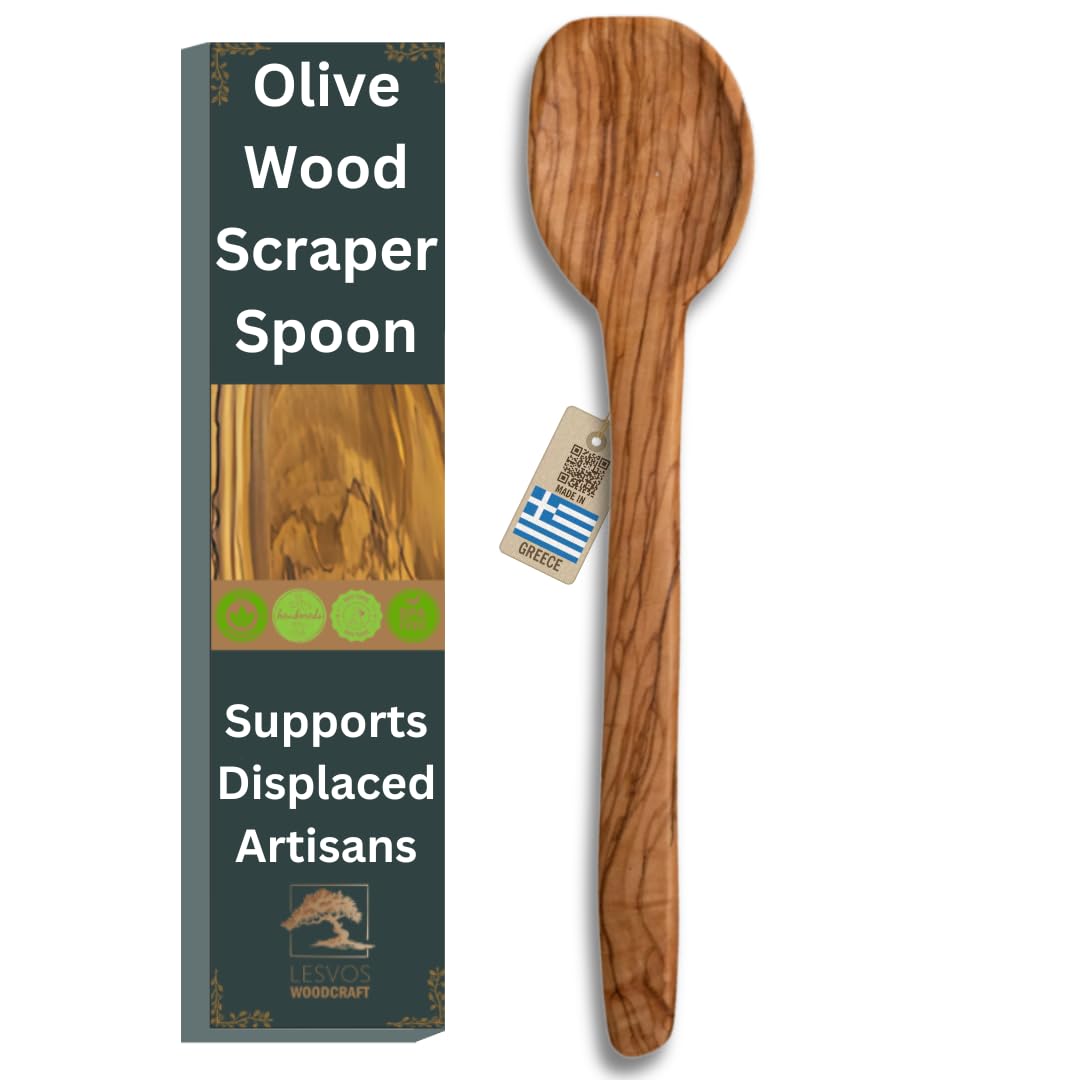 Blunt OLIVE WOOD Scraper Spoon – Olive Wood Serving and Cooking Spoon, Artisan Utensil, Fair-Trade, Handcrafted Serving Utensils, Olive Wood Utensils, Wooden Cooking Spoon -LESVOS WOODCRAFT