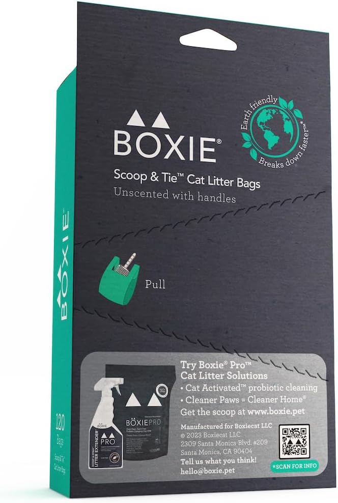 Perfect for keeping your home clean and odor-free, Boxie® Scoop & Tie™ Cat Litter Bags provide a simple, mess-free solution for litter disposal, making them an essential addition to any cat owner’s routine.