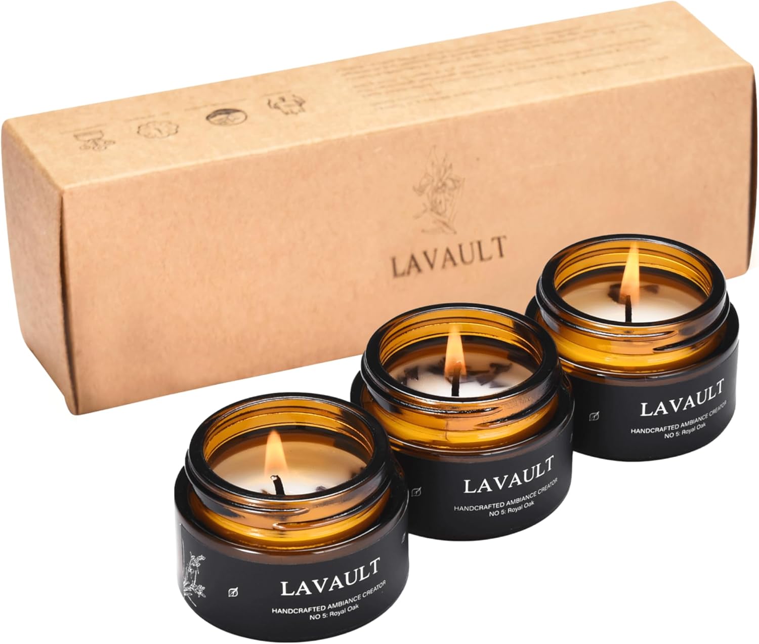 Brown Jar Candles | Set of 3 – Royal Oak Scented – Relaxing Wax Candle – Candle Sets – Aromatherapy Candles – Long-Lasting Scent – Made with Sustainable Materials – Gift Candles for Women
