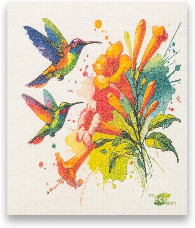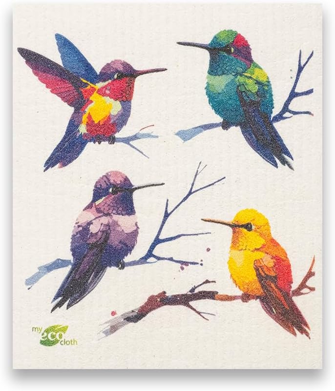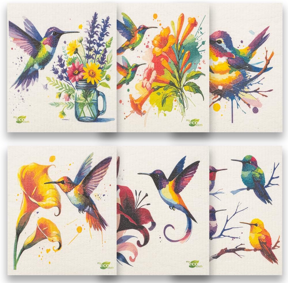 Cellulose Sponge Dish Towels – Mixed Set of 6 (One of Each Design) Humingbirds Swedish Dish Cloths