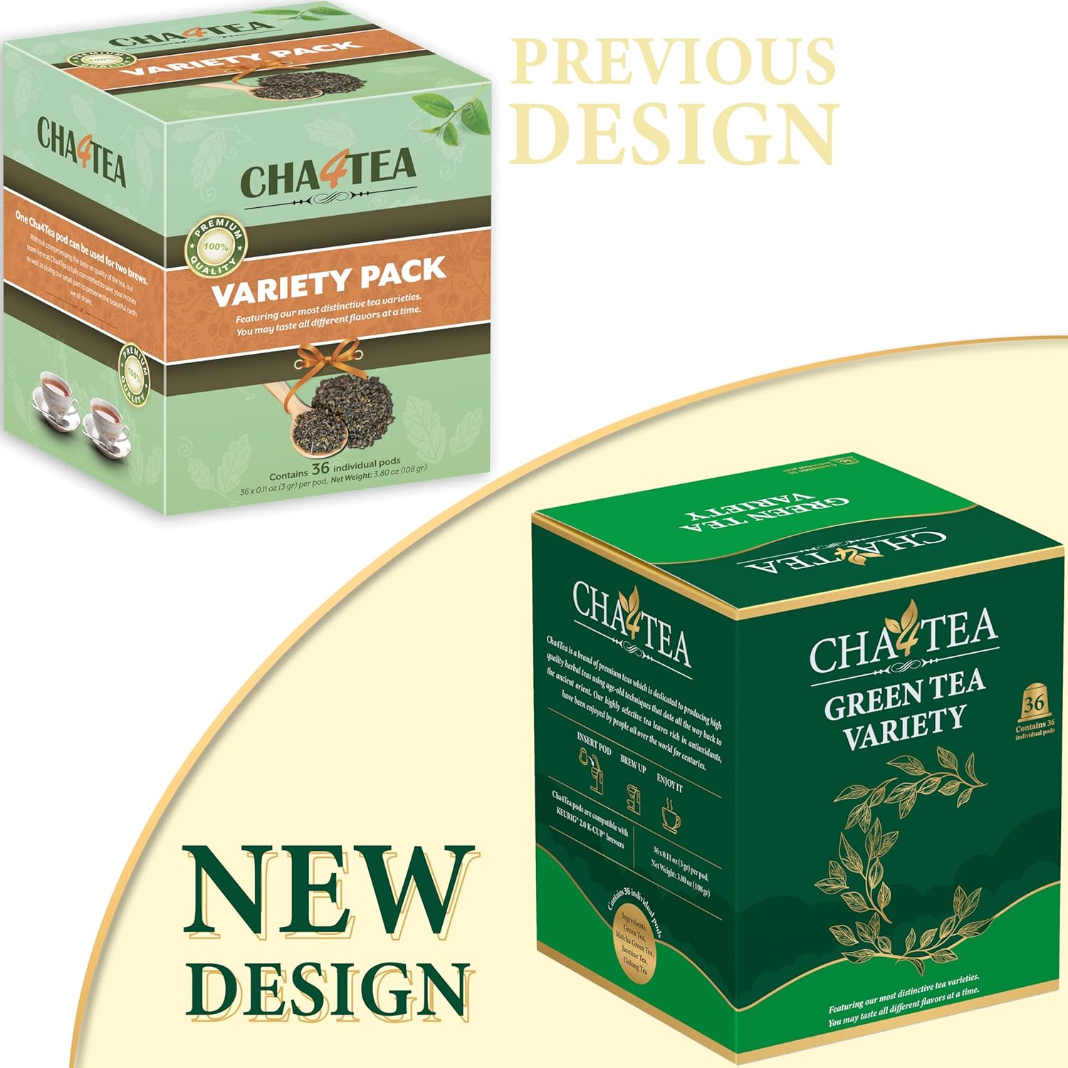 Cha4TEA 36-Count K Cups Assorted Green Tea for Keurig K-Cup Brewers (Matcha Green, Green Tea, Jasmine Green Tea, Oolong Tea)