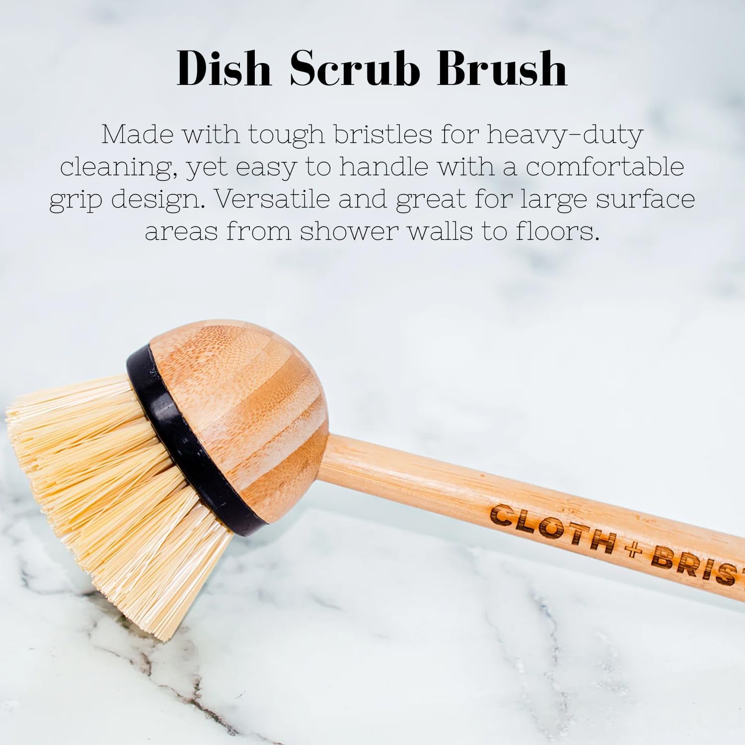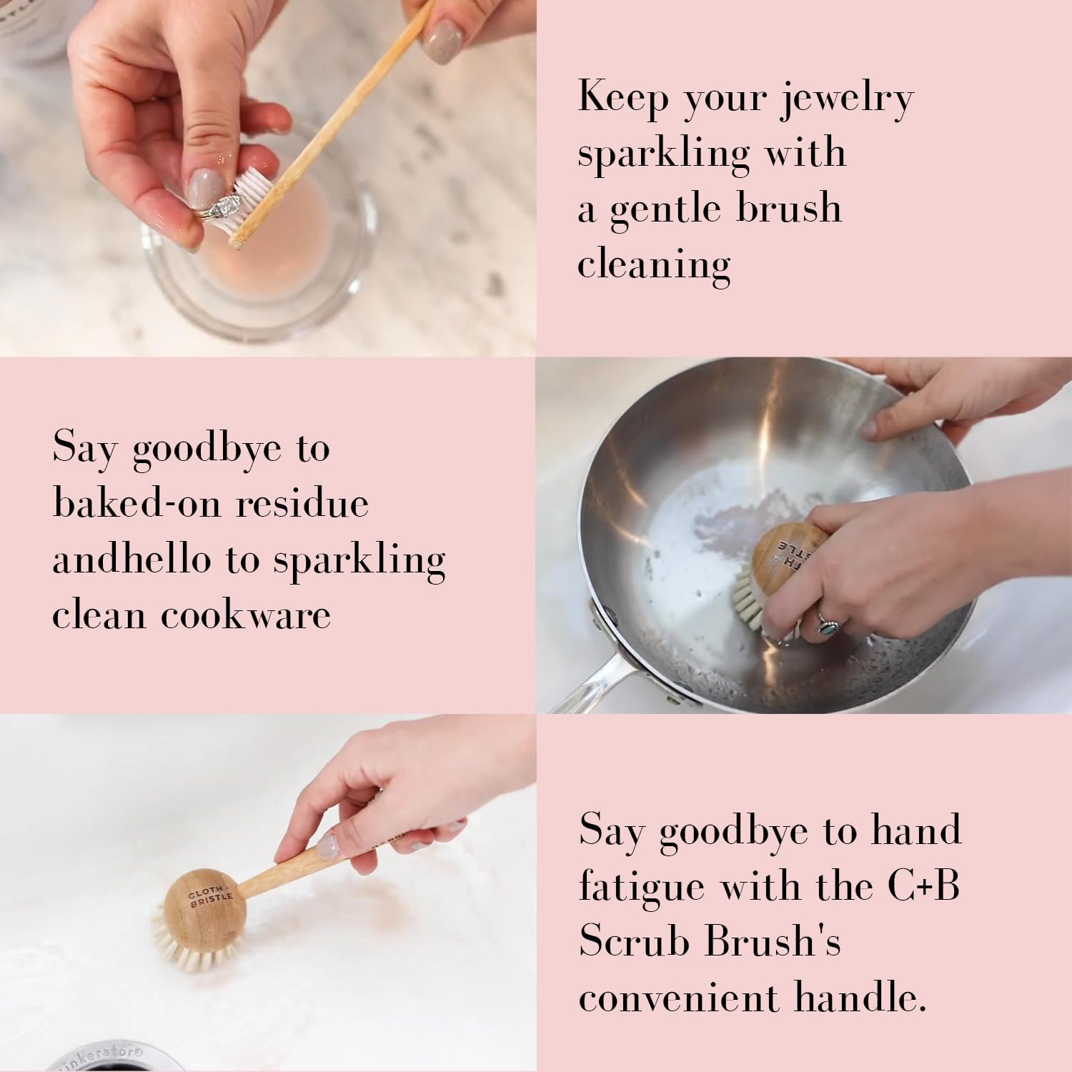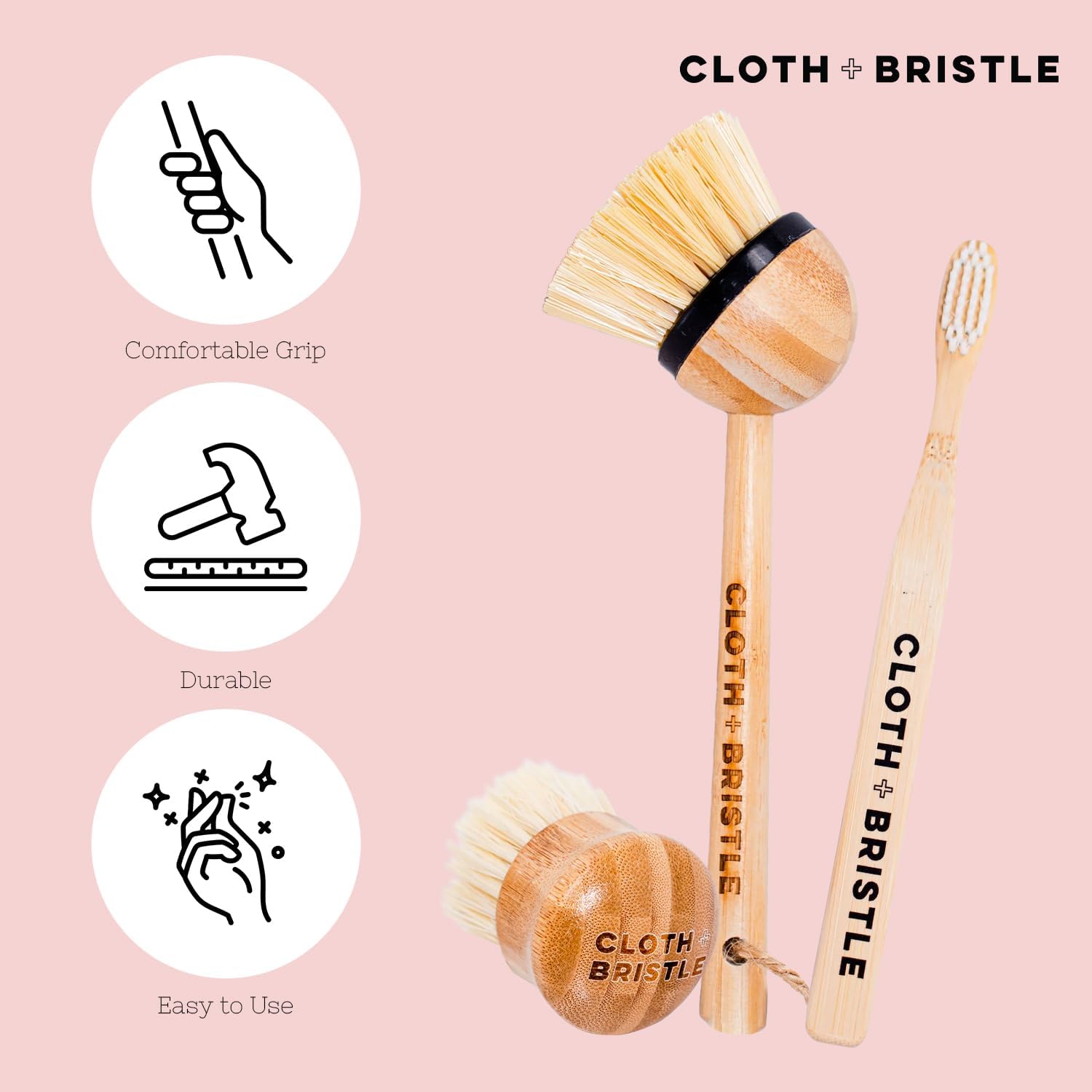 CLOTH & BRISTLE Bamboo Cleaning Brush Combo Set, Versatile Dish Scrub, Pot, and Detail Brushes for Kitchen, Grout, and Household Cleaning, Sustainable Bamboo Handles, Wooden, 197644993802