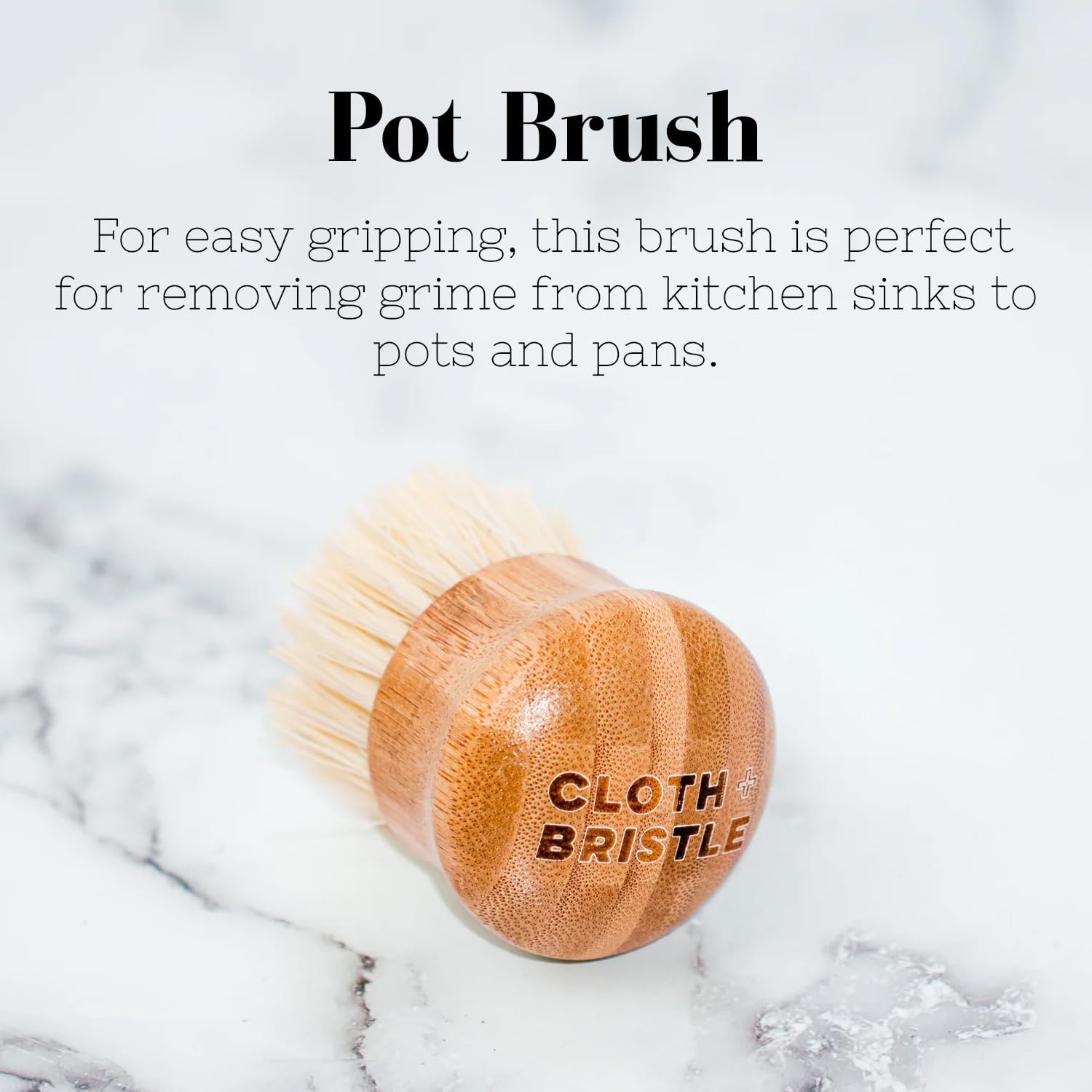 Introducing the Cloth + Bristle Bamboo Cleaning Brush Combo Set, the ultimate solution for a sustainable and effective cleaning experience. This comprehensive set includes a versatile dish scrub brush, a robust pot brush, and a detailed crevice cleaning brush, all meticulously designed with eco-conscious materials to tackle various household cleaning tasks. Perfect for eco-warriors and meticulous cleaners alike, our brushes are crafted from natural bamboo and durable bristles.