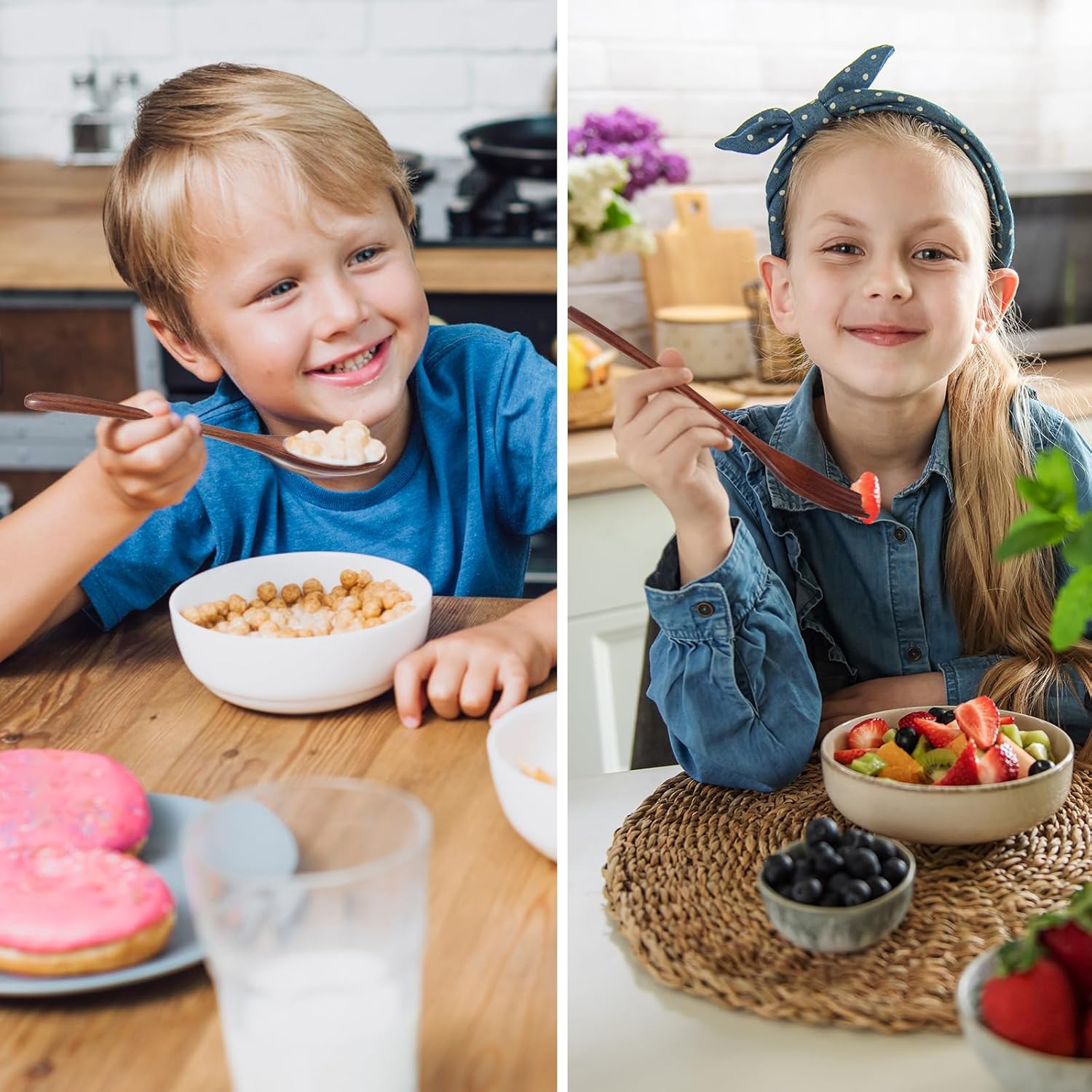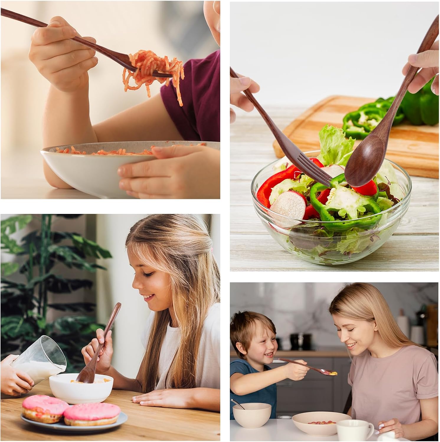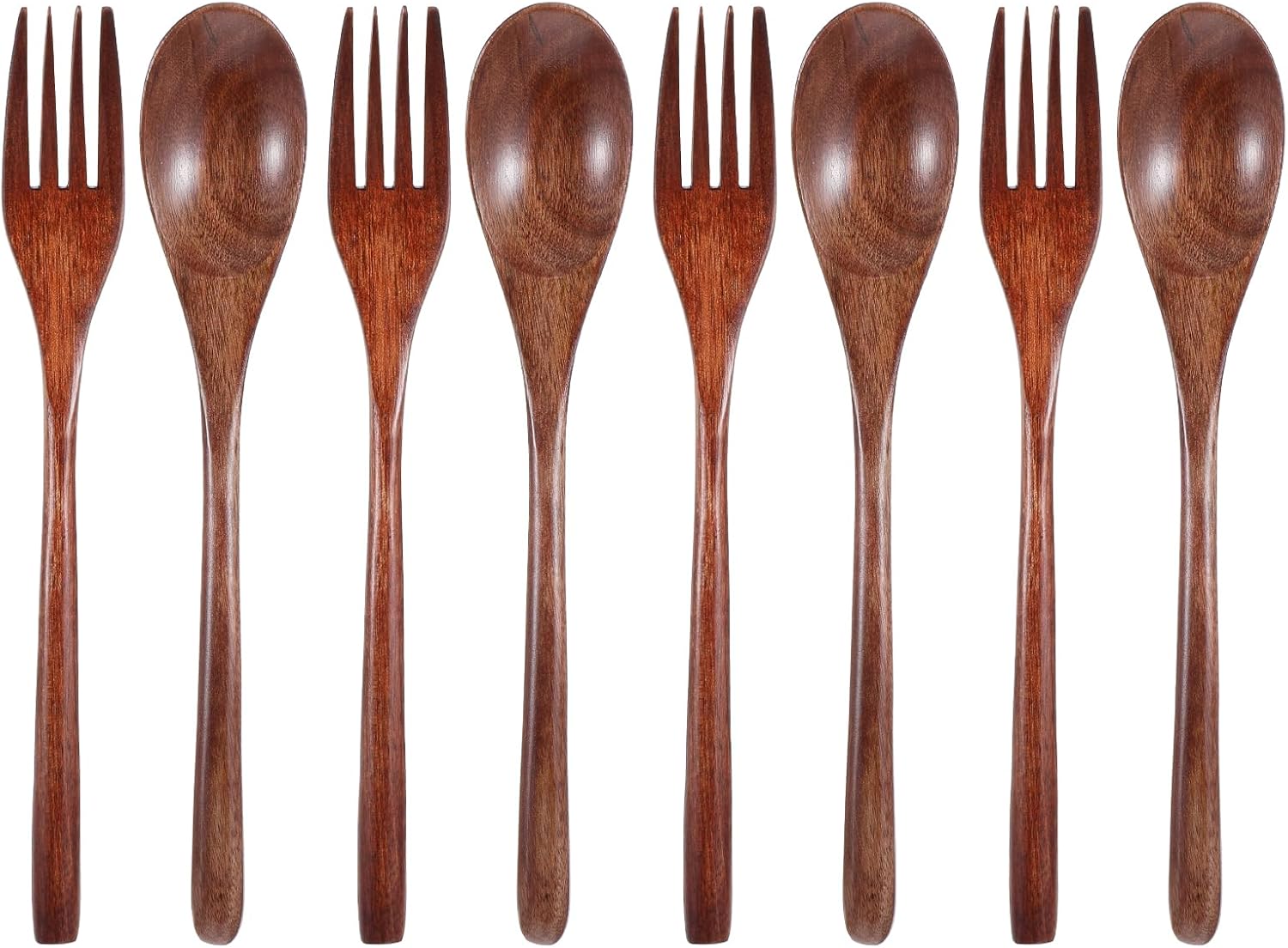 cobee Wooden Spoon and Fork for Eating,8Pcs Wood Dinner Utensil Set Handmade Reusable Kitchen Wooden Flatware Tableware Cutlery Set for Stirring Cooking Camping Party 9 Inch