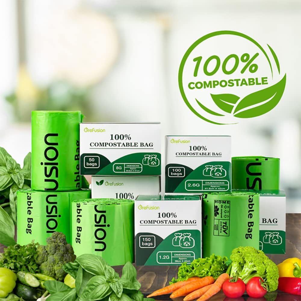 【COMPOST BIN KITCHEN&CONTROLS UNDESIRED ODORS 】We had updated the strong compost bags.small with a unique high density blend to prevent tears and to provide exceptional durability for even the heavier of waste loads.The green bags are sturdy,tear resistant,have leak-proof seals. The feature of GreFusion small compost bags fights nasty odors to keep your kitchen bin smelling fresh. It is convenient to cover your family several rooms for easy access and enough amount to last for a great while