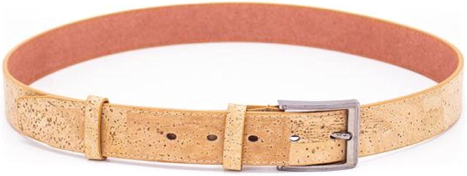 OUR CORK Belt is; *durable *water proof *wear and tear resistant *plant based *vegan *organic *sustainable *biodegradable *best ECO-FRIENDLY gift for men PETA approved vegan Made in Portugal Available sizes from 26 to 42 height: 1.6 inch width: 0.16 inch