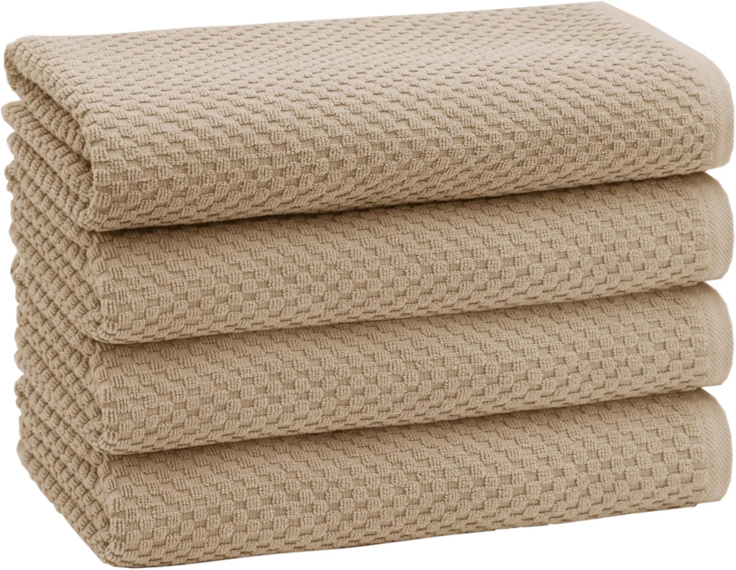 Quick-Drying: The waffle weave design promotes quick drying, ensuring that your bath towels are ready for use in no time. Bid farewell to damp towels and revel in the freshness of these quick-drying essentials. The calming beige linen color adds refinement to your bathroom decor. Effortlessly blend these bathroom towels with any color scheme, creating a cohesive and stylish look in your personal home spa.
