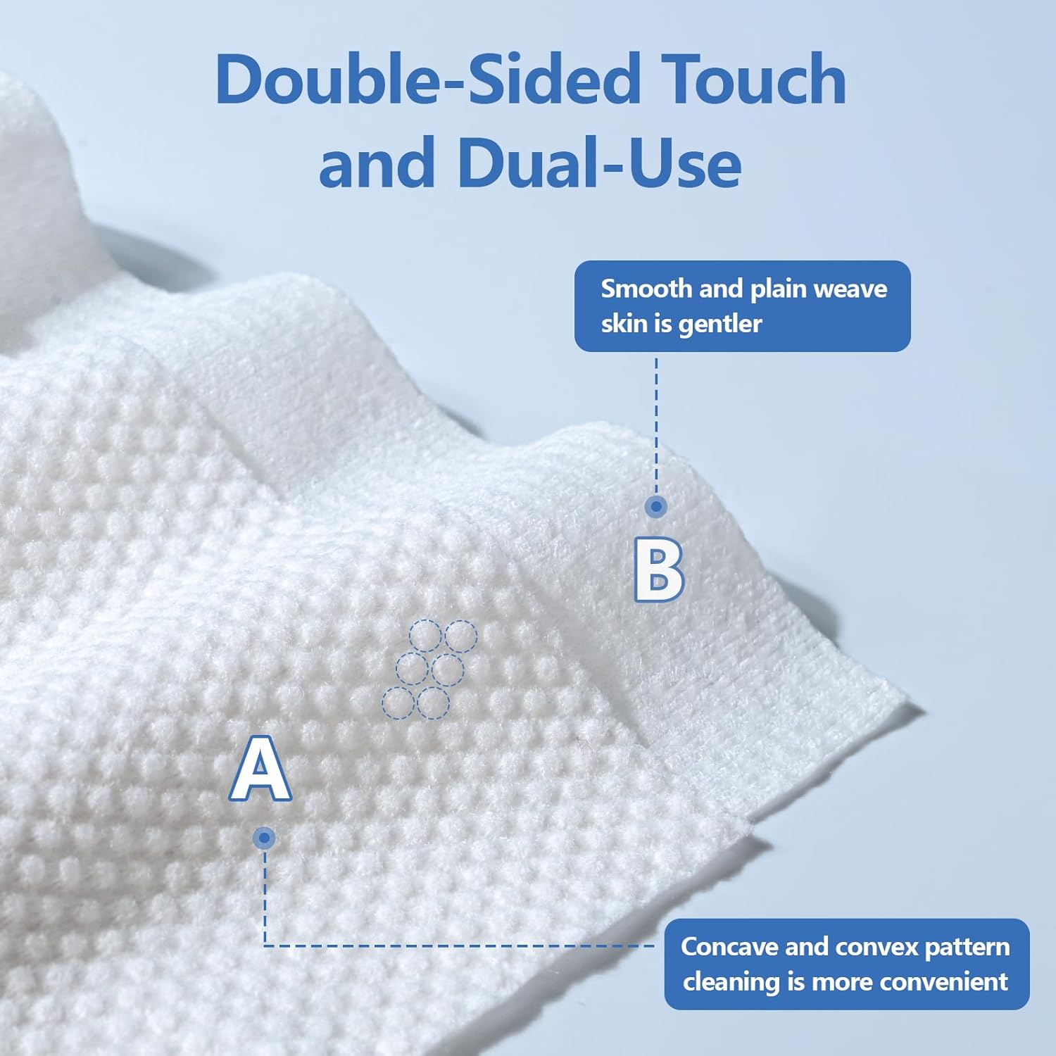 【Multi functional life helper】Facial towels disposable is not only a perfect face cleaning tool, but also can be used to remove makeup, apply facial mask, baby care, pet cleaning and even household wiping. The durable material of this face towel can withstand various usage scenarios and will not break or shed fibers when exposed to water. A versatile package that meets the needs of the whole family, it is an essential item for your home travel.