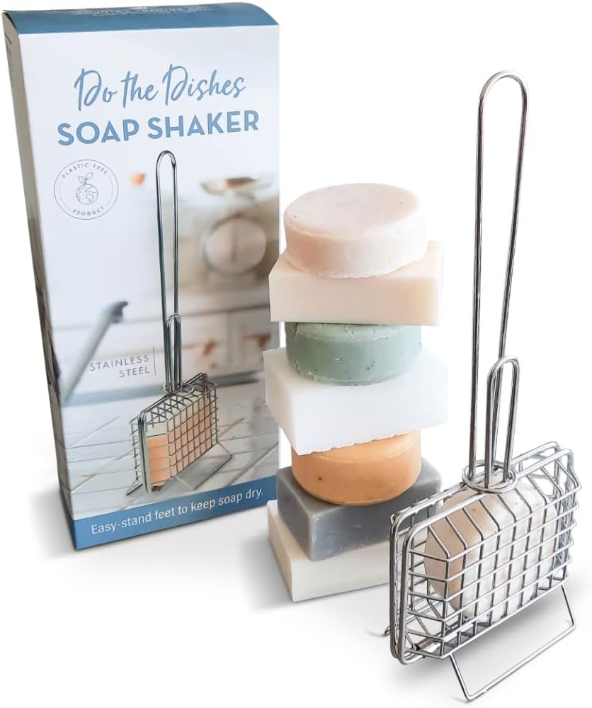 TESTED WITH ALL BRANDS – large dish soap bars can be cut in half to fit the soap shaker plastic free product designed to last a lifetime